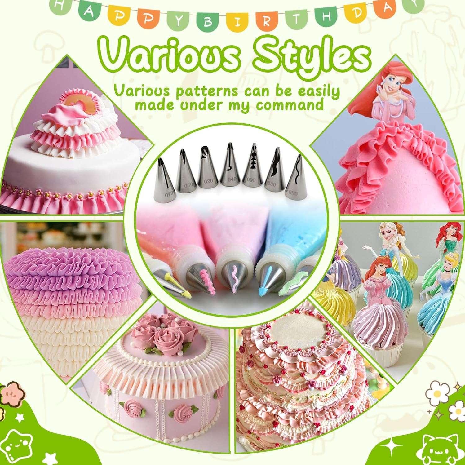 - Make Multiple Patterns: This frosting piping kit has 7 different types of replaceable piping tips, you can easily make more patterns on cakes, making your desserts more delicious and beautiful
