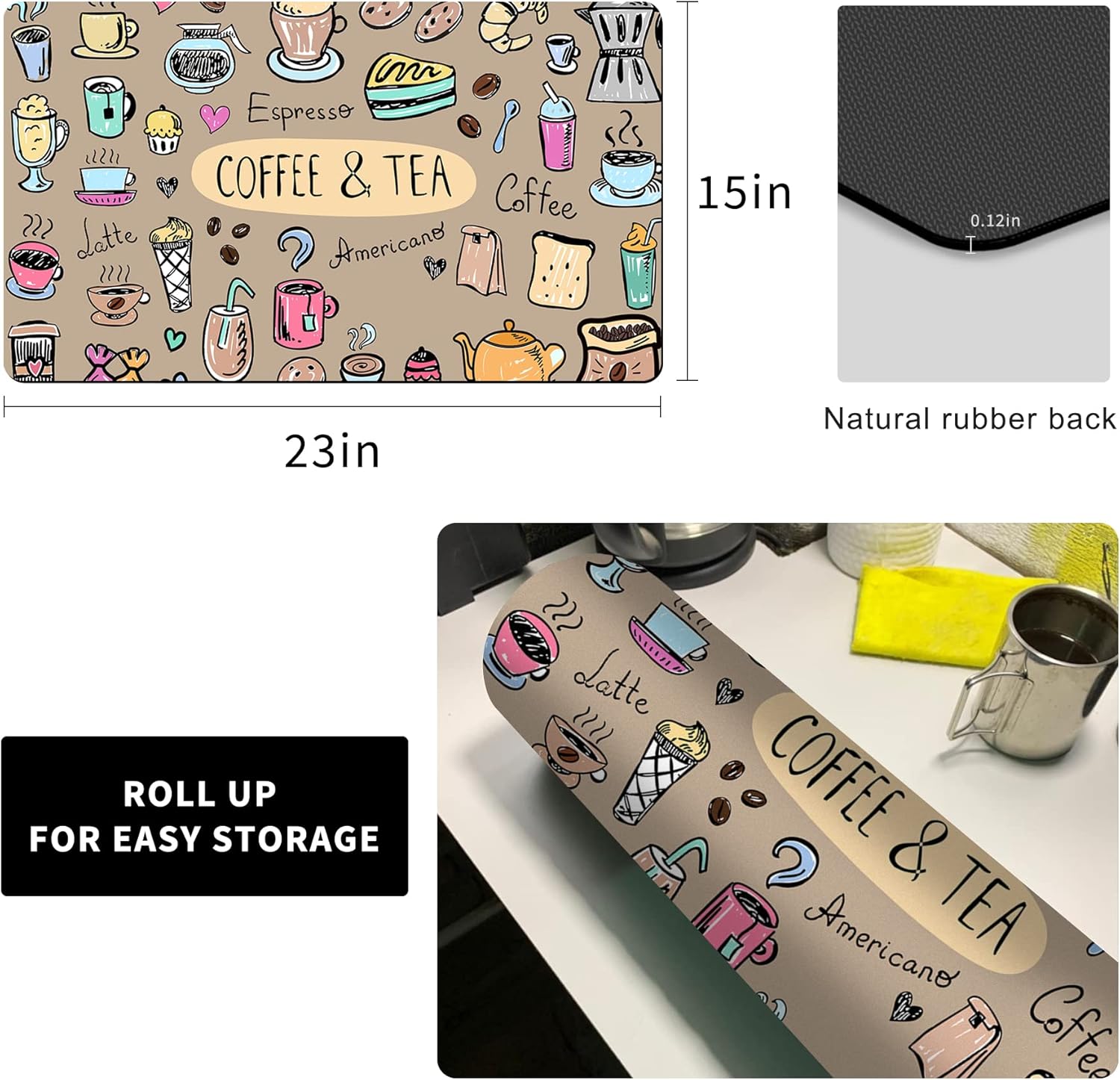 - ☕Easy to clean: The coffee bar mats for countertop can be cleaned with hand or machine to remove stains, and then dried and reused, but do not bleach.