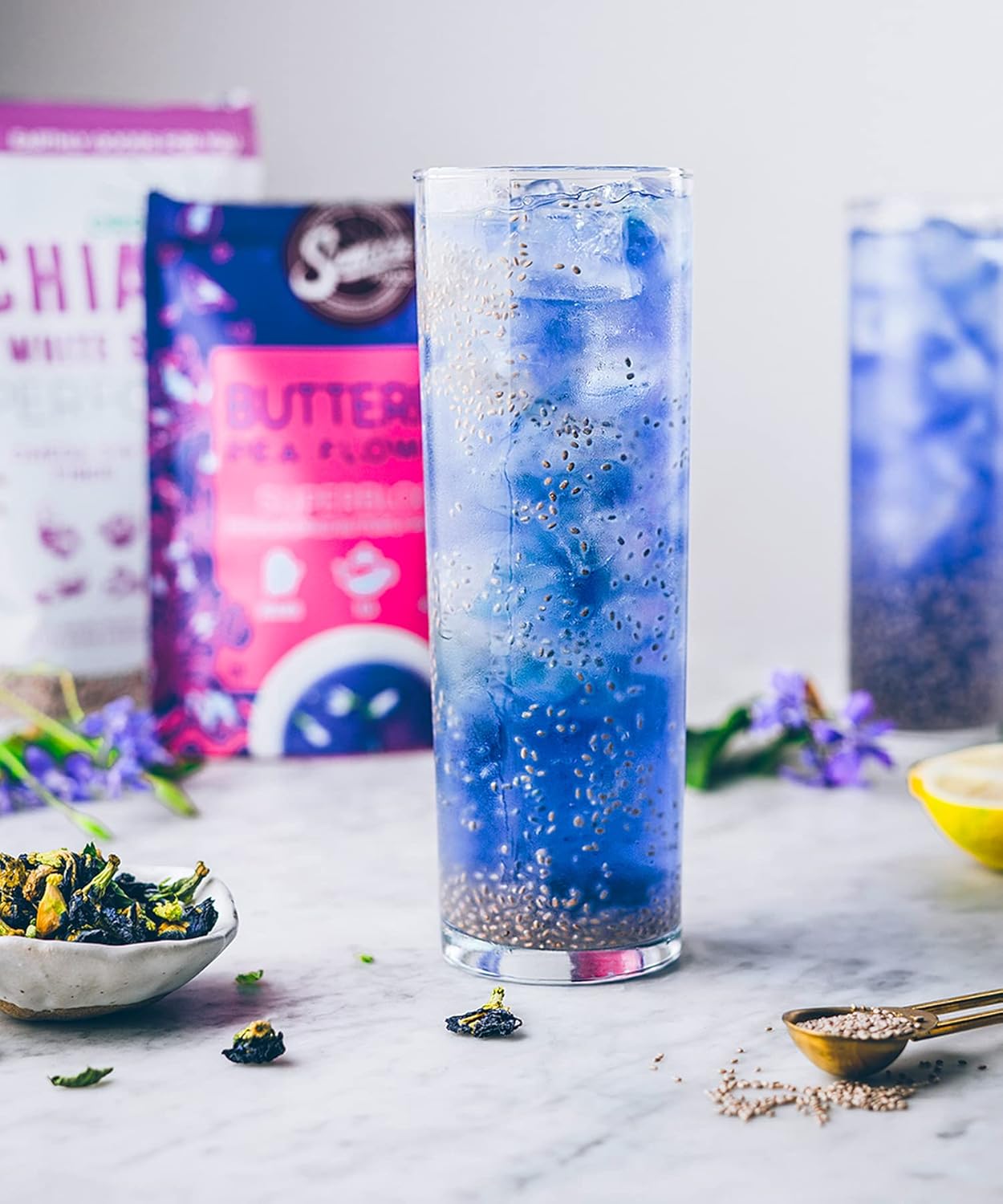 - Tips And Tricks - These beautiful flowers aren't just meant to make teas; they're a spectacular way to add color and aroma. Try infusing them into your water when you're making your next batch of rice or noodles and create gorgeous blue meals that can magically turn into purple with the addition of citrus! Bonus: Suncore Foods blooms are great to mix together to create your very own super blend