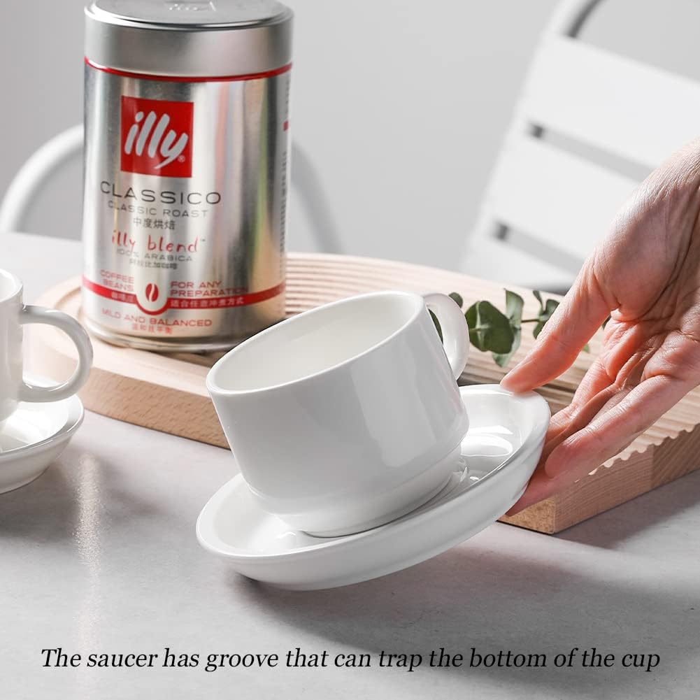 - Ideal Size- The 8 oz capacity, which is larger than most of other espresso cup, enable it to meet your defferent needs. Classic appearance adds elagance tou your kitchen and your guests would get impressed by the cappucino cups set when enter the kitchen.