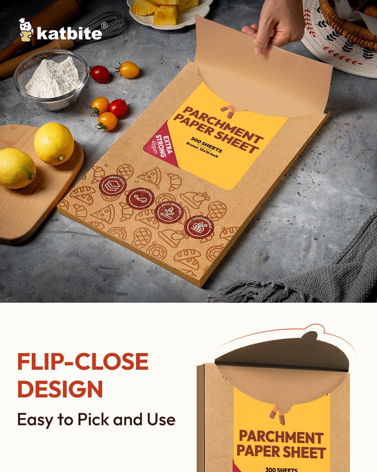Katbite 300 Sheets 12x16 In Parchment Paper, Heavy Duty Baking Paper, Unbleached Non-stick Sheets for Air Fryer, Grilling, Steaming Cooking Bread Cake and Wrapping Foods