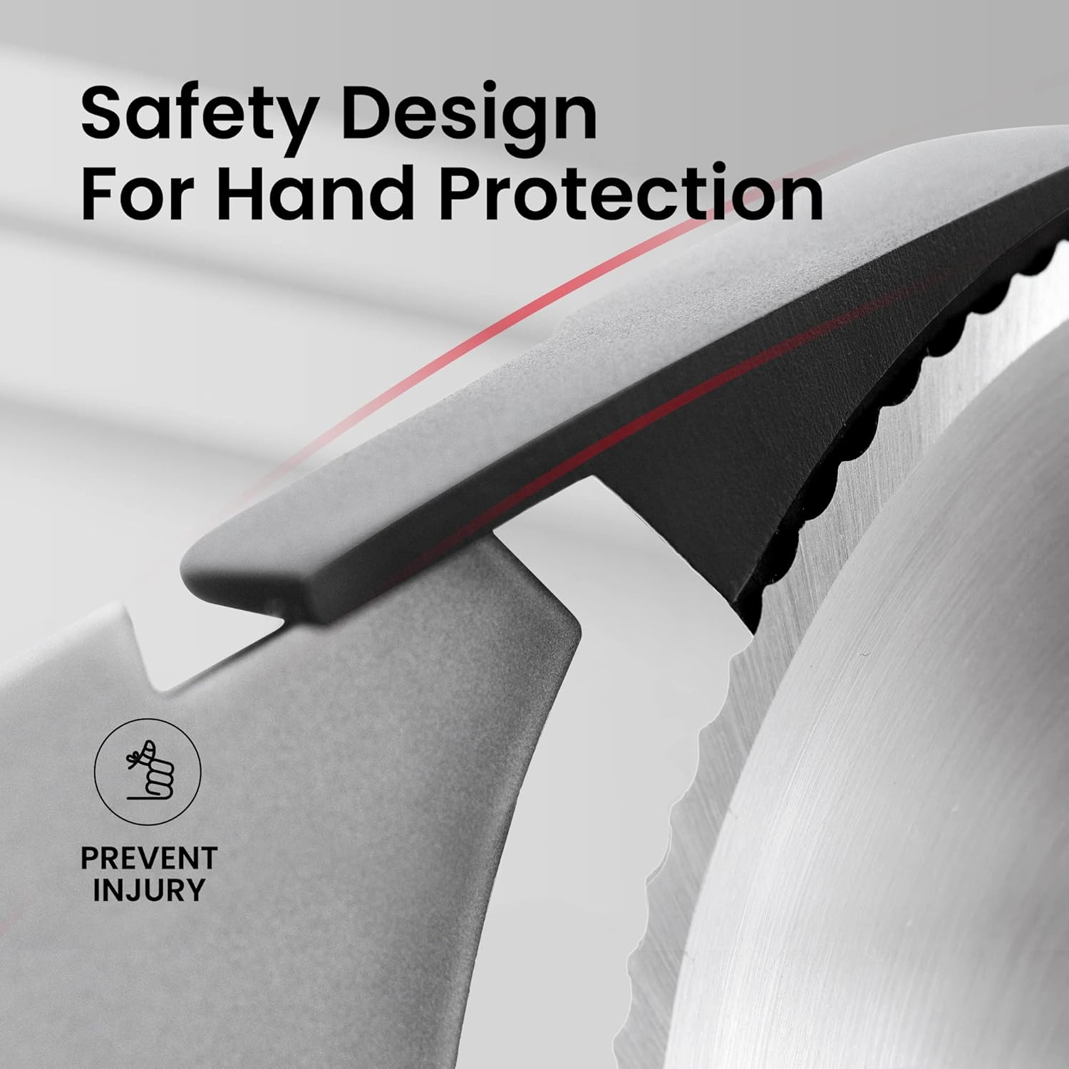 - 【Compact and Durable Design】Constructed from solid cast aluminum, this slicer is built to last while maintaining a sleek appearance. Its compact design makes it suitable for most countertops and cabinets, making it an ideal choice for both everyday use and special occasions.