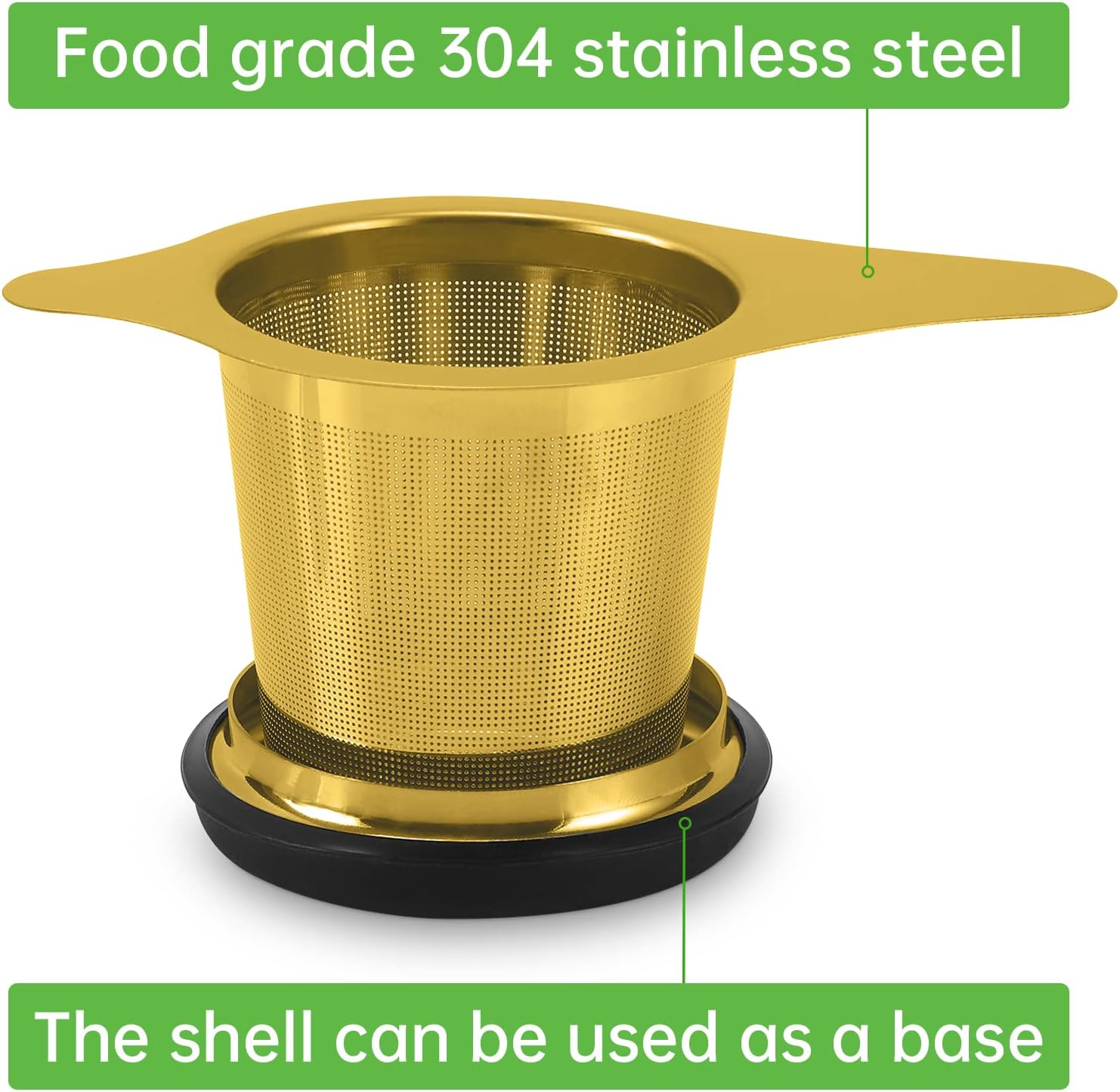 Two Pack Tea Infuser Basket Stainless Steel Tea Strainer Tea Filter With Small Strainer And Lid Tea Diffuser For Loose Tea Superior Brewing Experience (Two pack gold)