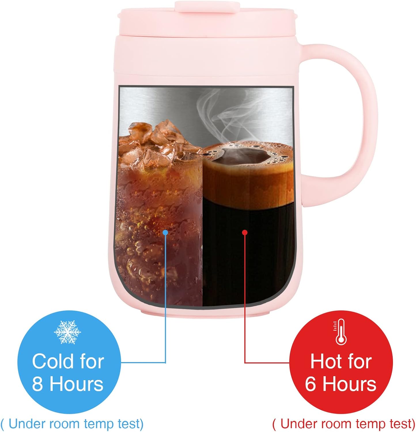 - Vacuum Insulated Coffee Mug with Handle: It is with double walled vacuum insulation technology, keeping your favorite beverages hot for up to 6 hours and cold for up to 8 Hours.