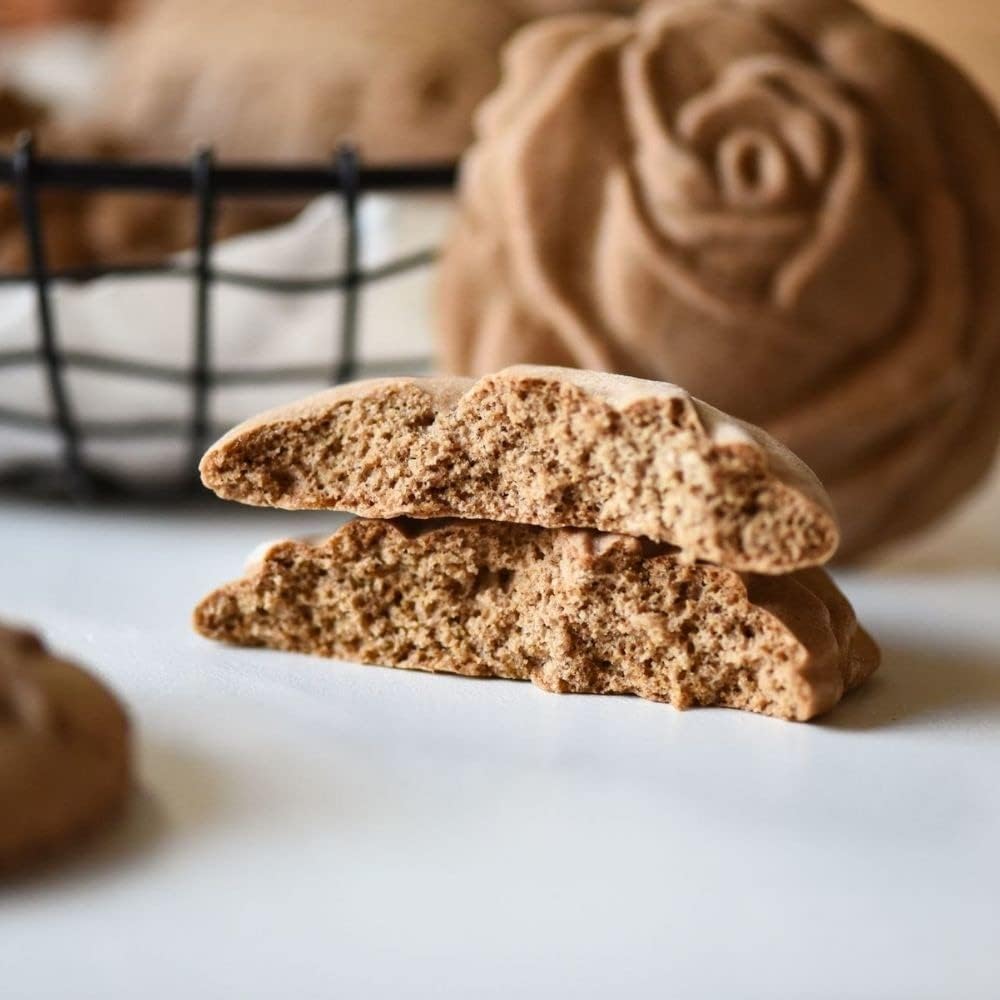 Wooden Cookie Mold - Biscuit Baking Cutter, Carved Embossing Stamp for DIY Shapes, Gingerbread, Pine Cone (Rose)
