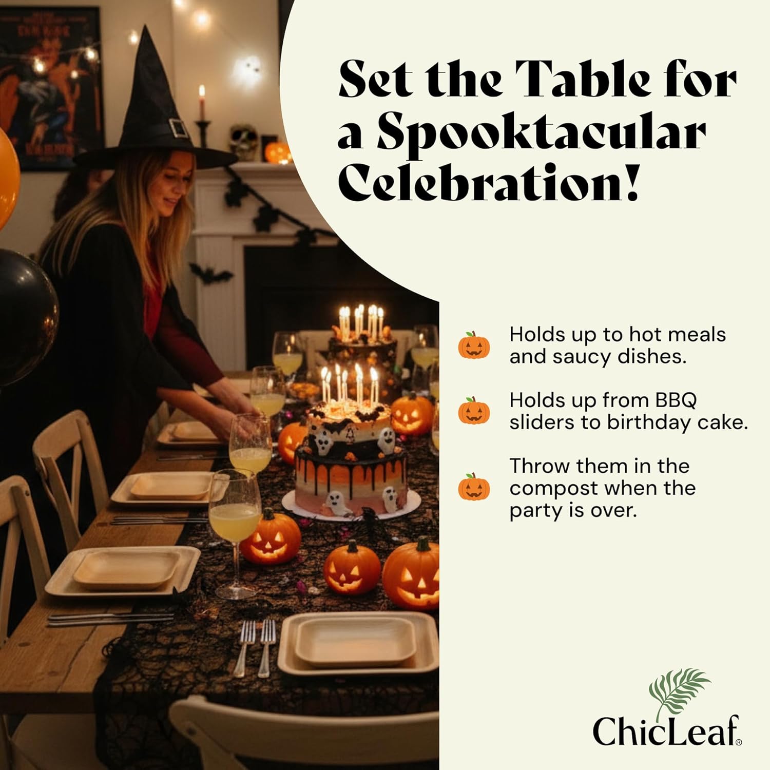 Chic Leaf Palm Leaf Disposable Bamboo Plates - Party Plates for Weddings & Event Appetizers - Biodegradable & Compostable - Party Supplies (9", 20 Pack)