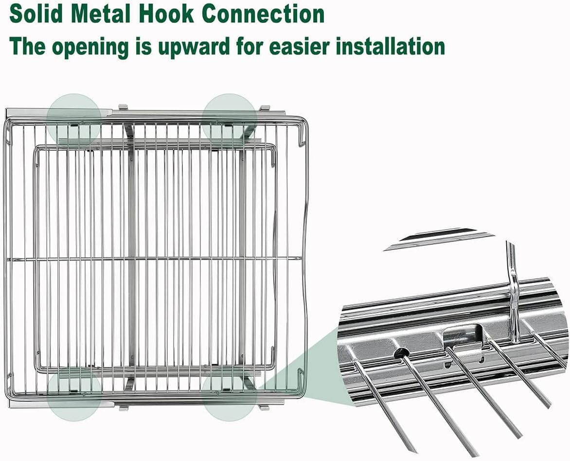 - ※ Excellent Design: The upper and lower wire baskets of this Cabinet Organizer has 2 height adjustment options, and the installation compatibility in the cabinet is better. When installing the lower wire basket, there are two heights to choose from, Which can easily solve the problem that the lower wire basket cannot be pulled out due to the lip of the cabinet. With a minimum height of 13.8 inches and a maximum height of 15 inches.
