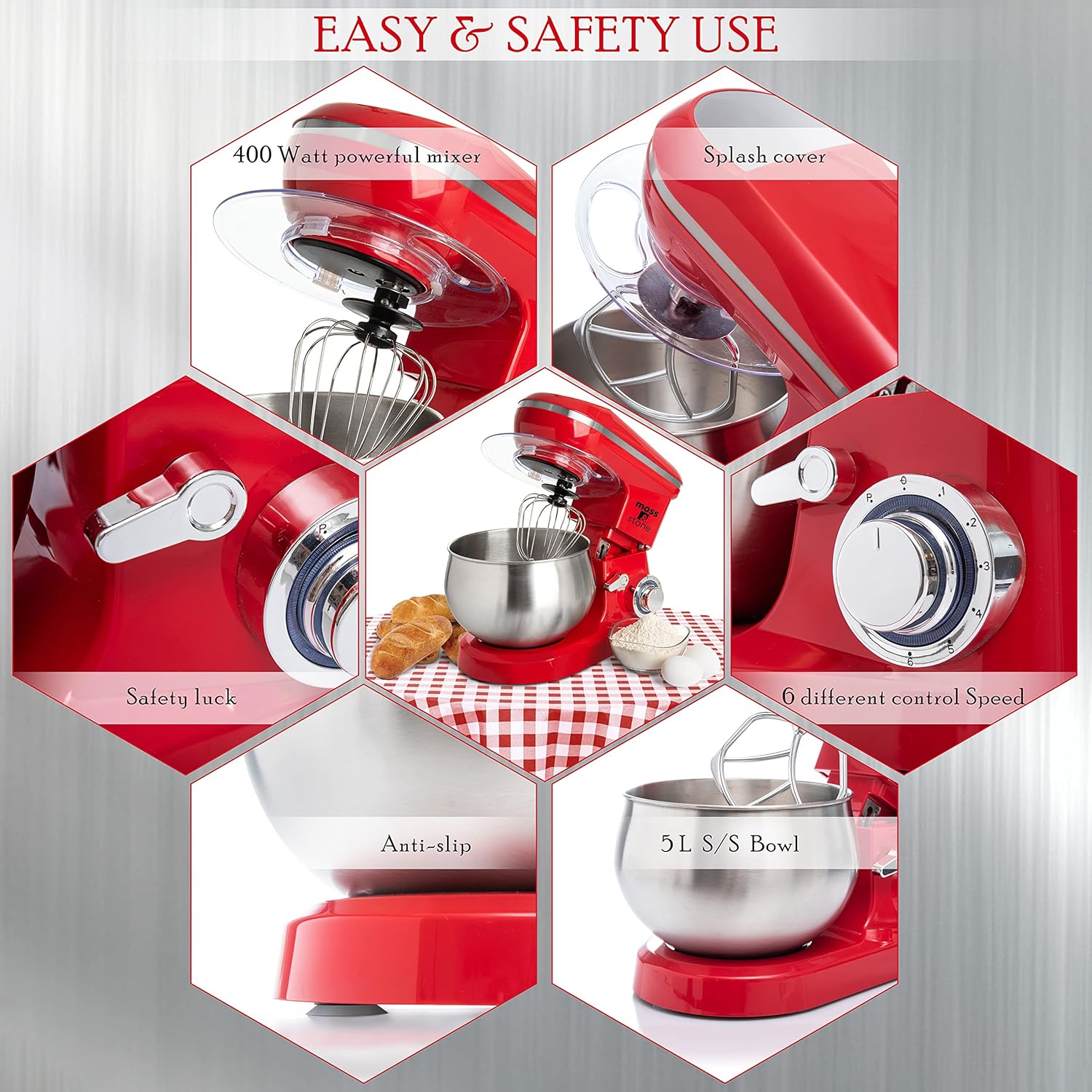 - Powerful Motor & Variable Speed Control: With a 6-speed controller with pulse function and 400w powerful dough mixer machine, you will easily handle your work to let you choose from a slow stir to a fast mix, suitable for different ingredients, stirring, folding, kneading, mixing and beating.