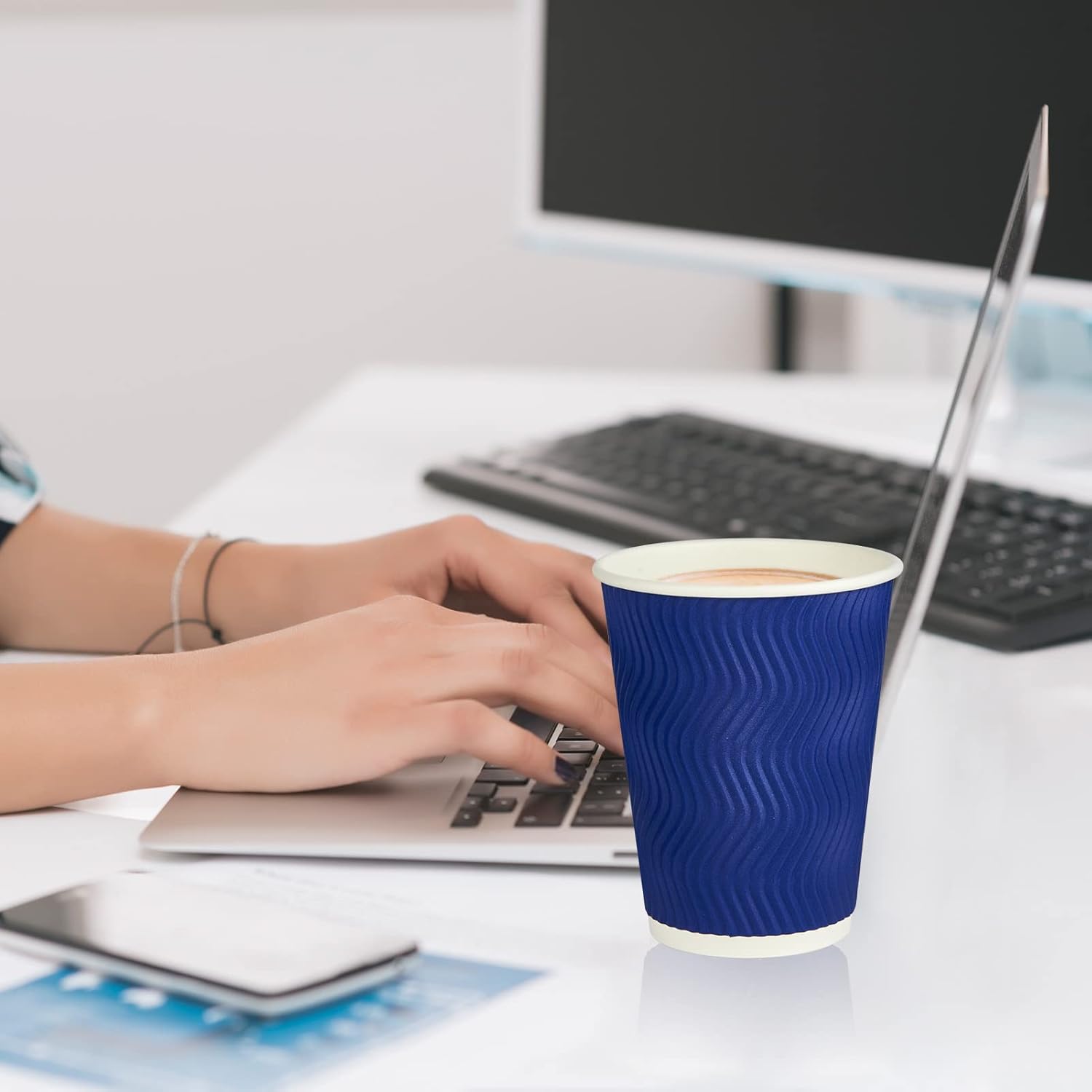 JollyPack 60 Pack 12 oz Paper Coffee Cups, Blue Disposable Beverage Cups with Insulated Ripple Wall for Coffee, Tea, and Hot Chocolate