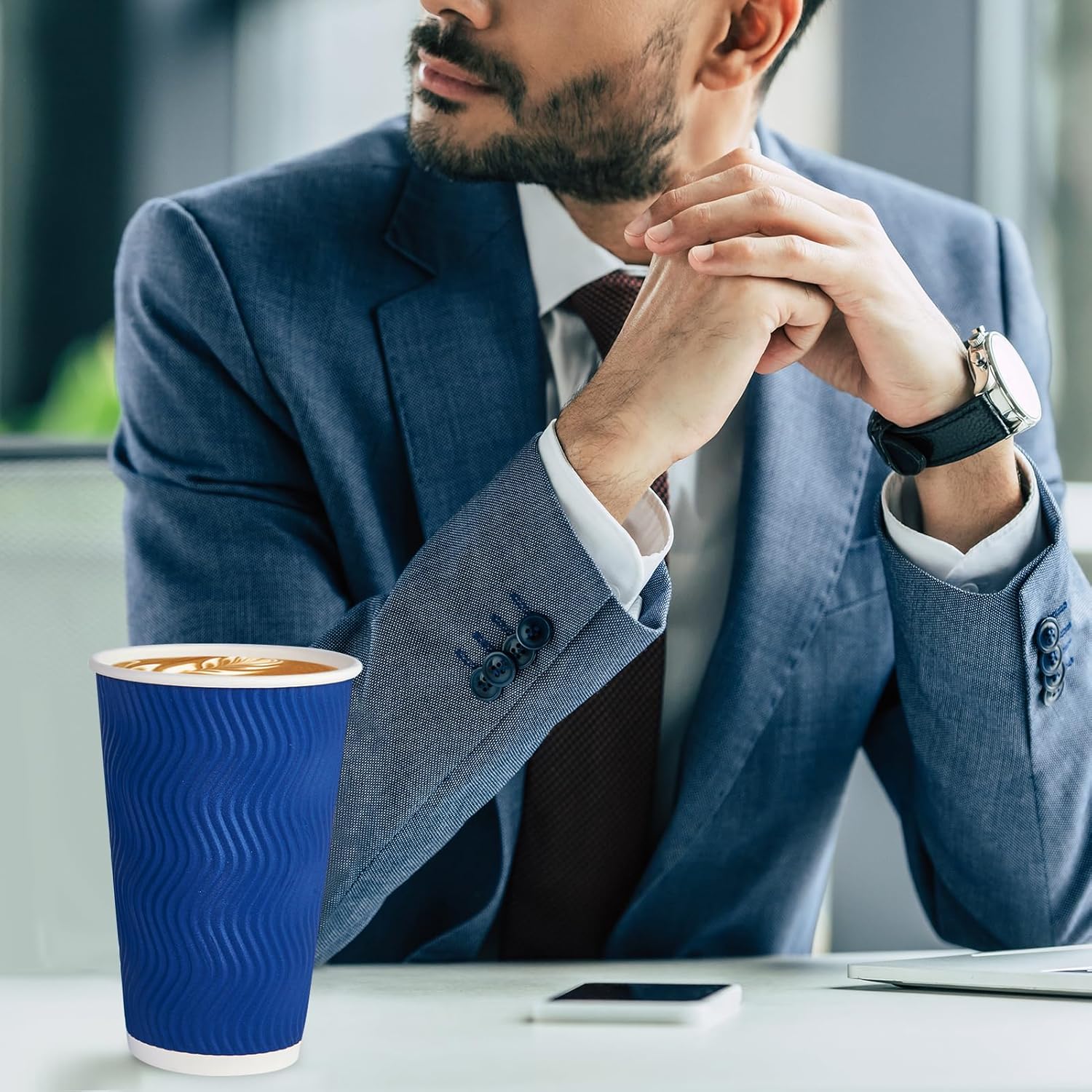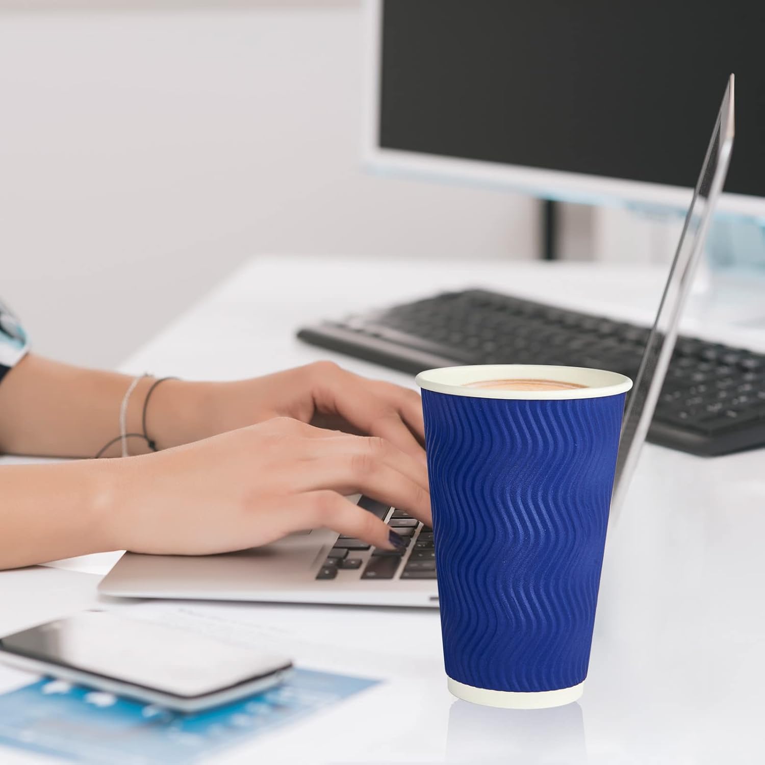 JollyPack Paper Coffee Cups, 16 oz, Blue, 60 Pack, Heat Resistant, Disposable, Ripple Wall, for Coffee, Tea, Hot Chocolate