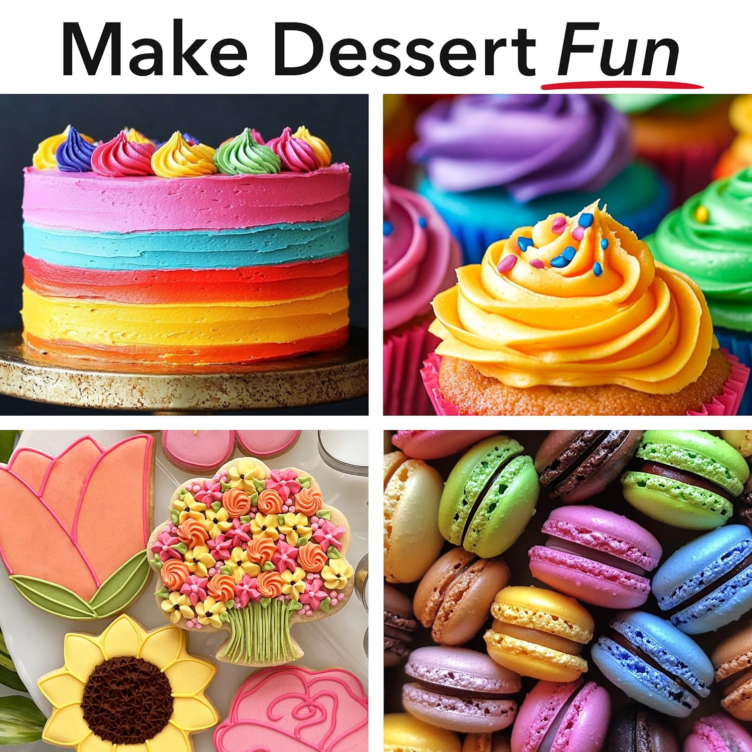 - Vibrant Colors: Brighter, more concentrated food coloring gel for icing, frosting, buttercream, batter, cakes, cupcakes, and cookies. One tube colors enough icing for 32 two-layer cakes!