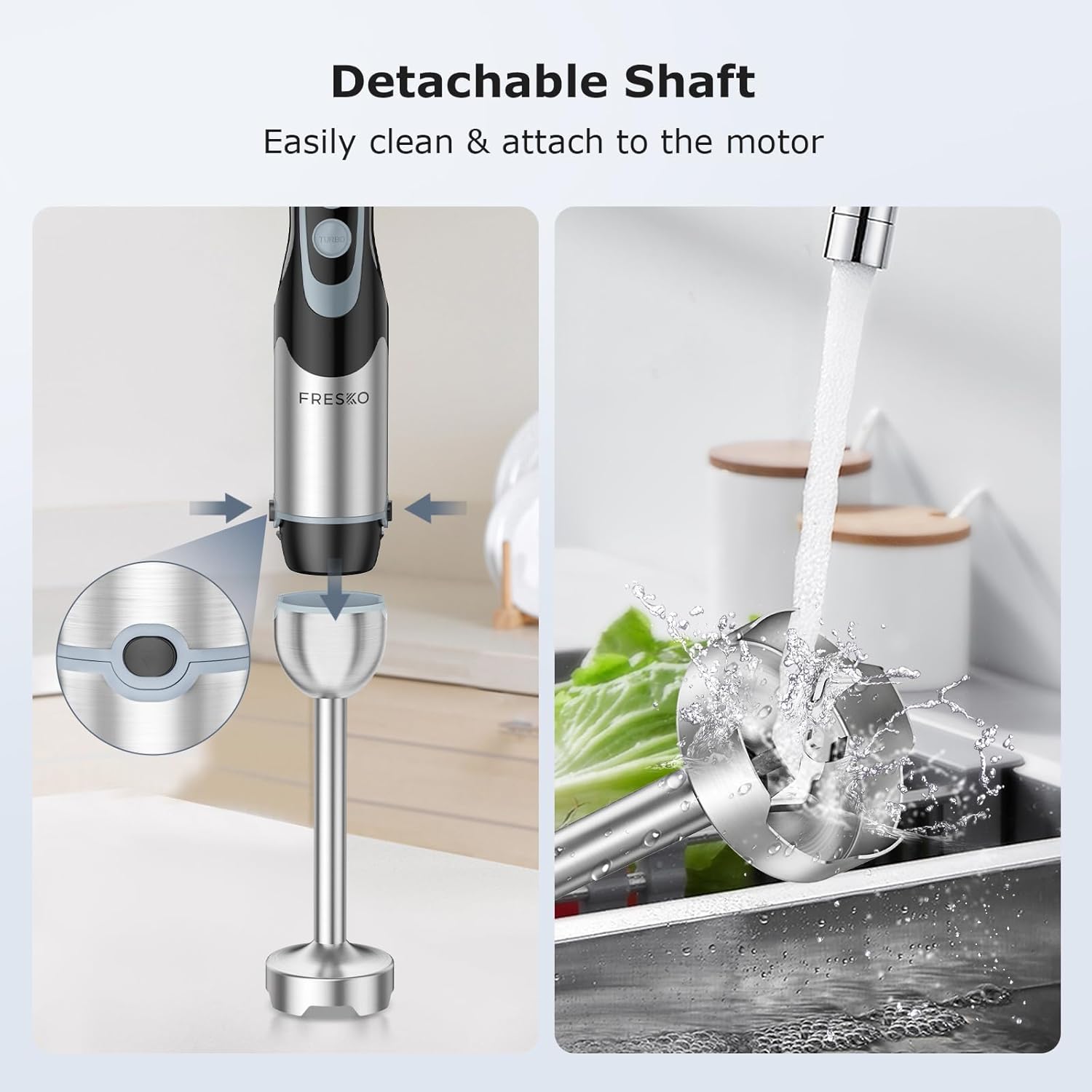 - Easy to Clean: Immersion hand blender attachments are easily detachable for quick cleaning with water. Please don't immerse the motor part of the blender in water