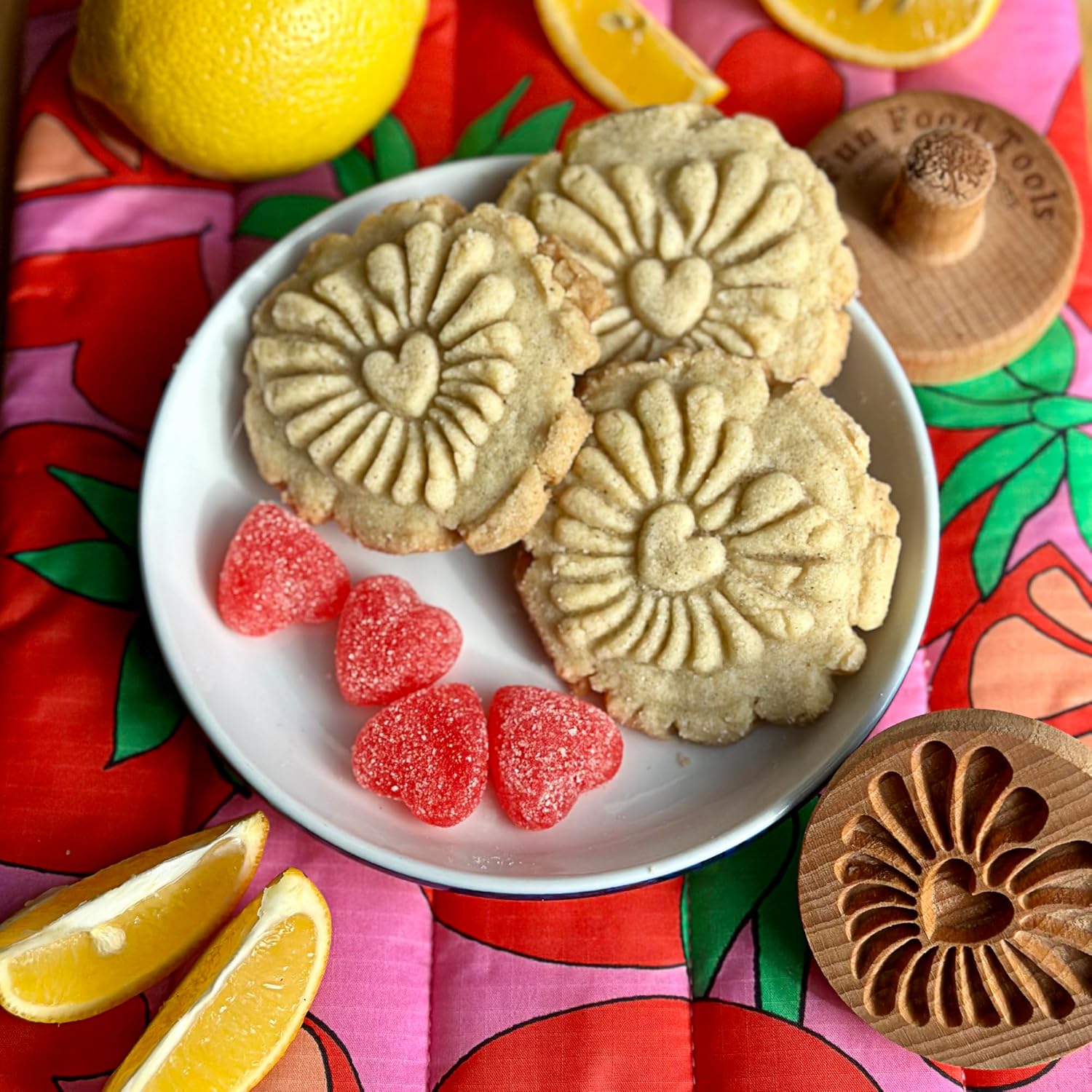 - The cookie stamp is carved from high-quality wood and sealed with a durable coat of food-grade flaxseed oil. Please don't soak the stamp in water and don't put your cookie stamp in the dishwasher.
