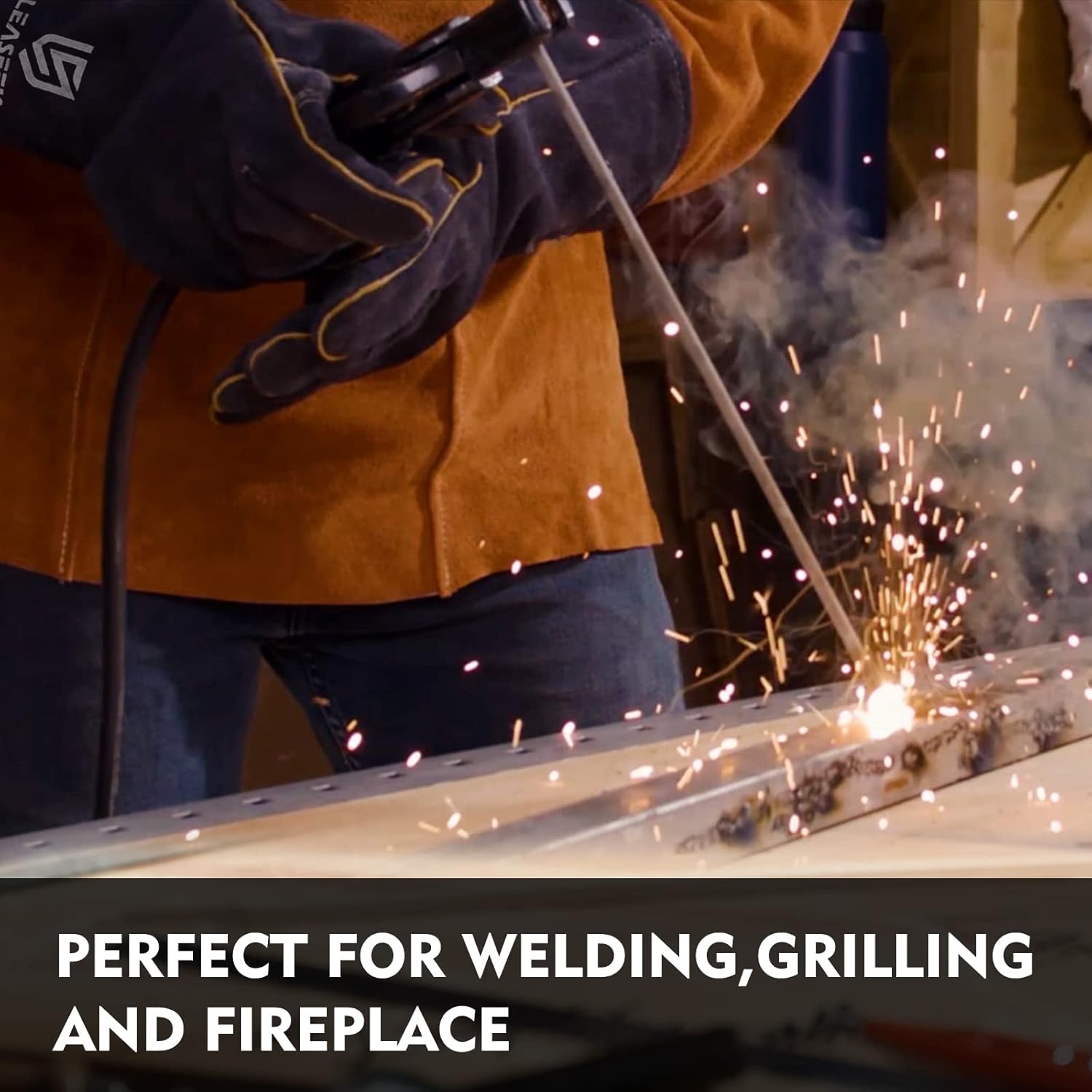 LeaSeek Leather Forge Welding Gloves, Heat/Fire Resistant Barbecue Gloves,Mitts for Fireplace,BBQ,Welder,Grill,Oven,Stove,Tig