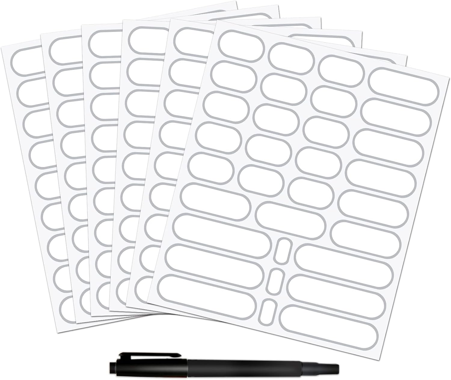 - Labels with Silver Border for Kitchen Organization - 192 write-on sticker labels designed in 4 sizes to fit the most sizes of food storage containers, bottles, canisters and jars - 3.54"x0.98"(36PCS) + 2.53"x0.98"(48PCS) + 1.66"x0.98"(90PCS) + 0.98"x0.56"(18PCS) . 2 markers included. Black marker included