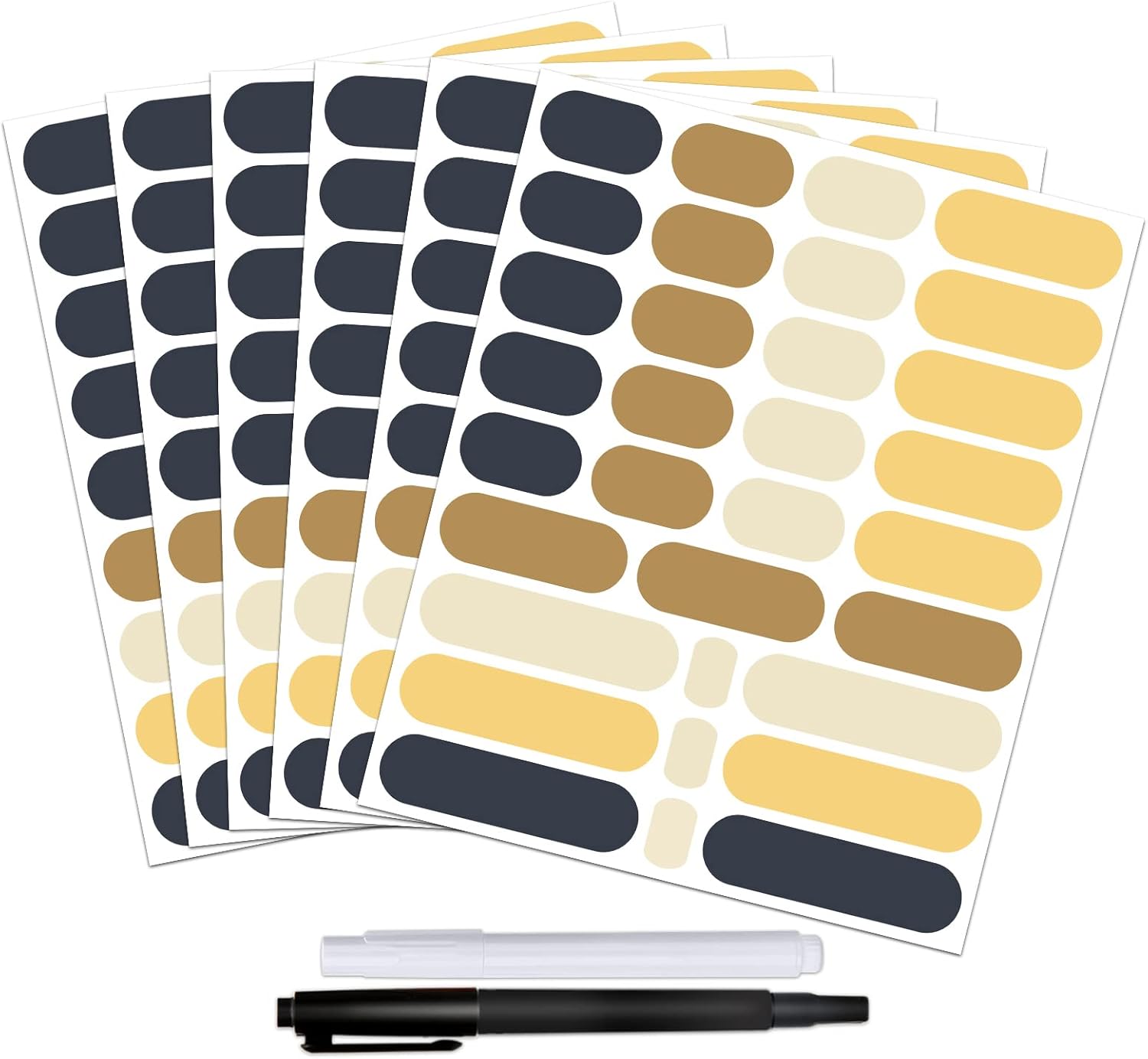 - Colored Chalkboard Labels for Kitchen Organization - 192 write-on sticker labels designed in 4 sizes to fit the most sizes of food storage containers, bottles, canisters and jars - 3.54"x0.98"(36PCS) + 2.53"x0.98"(48PCS) + 1.66"x0.98"(90PCS) + 0.98"x0.56"(18PCS) . 2 markers included. 2 markers included