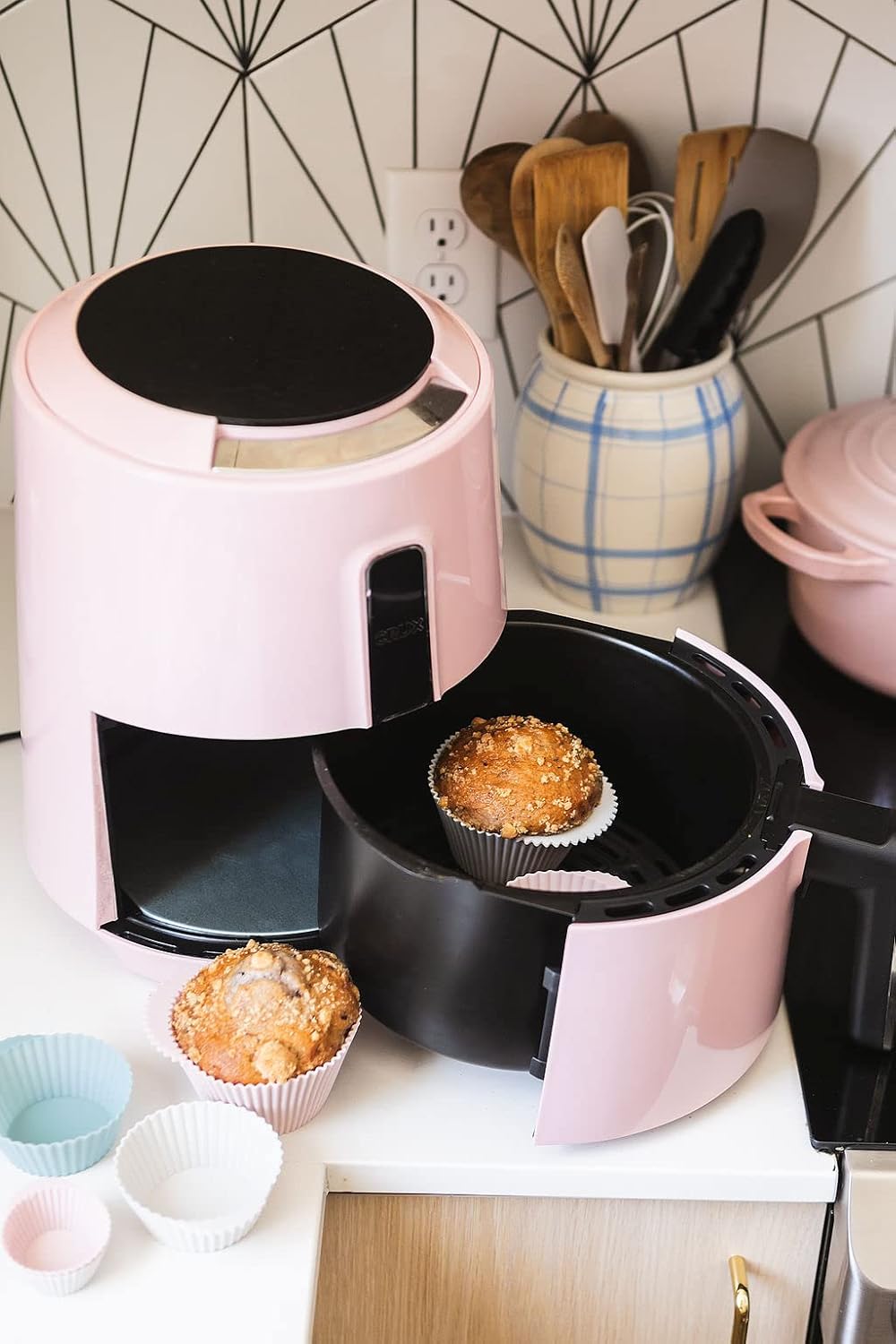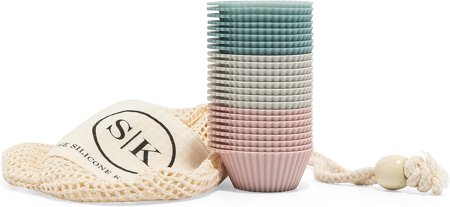 The Silicone Kitchen Reusable Silicone Baking Cups Silicone Muffin Liners for Cupcakes, BPA Free, Mini, 24 Pack, Pink Gray Blue