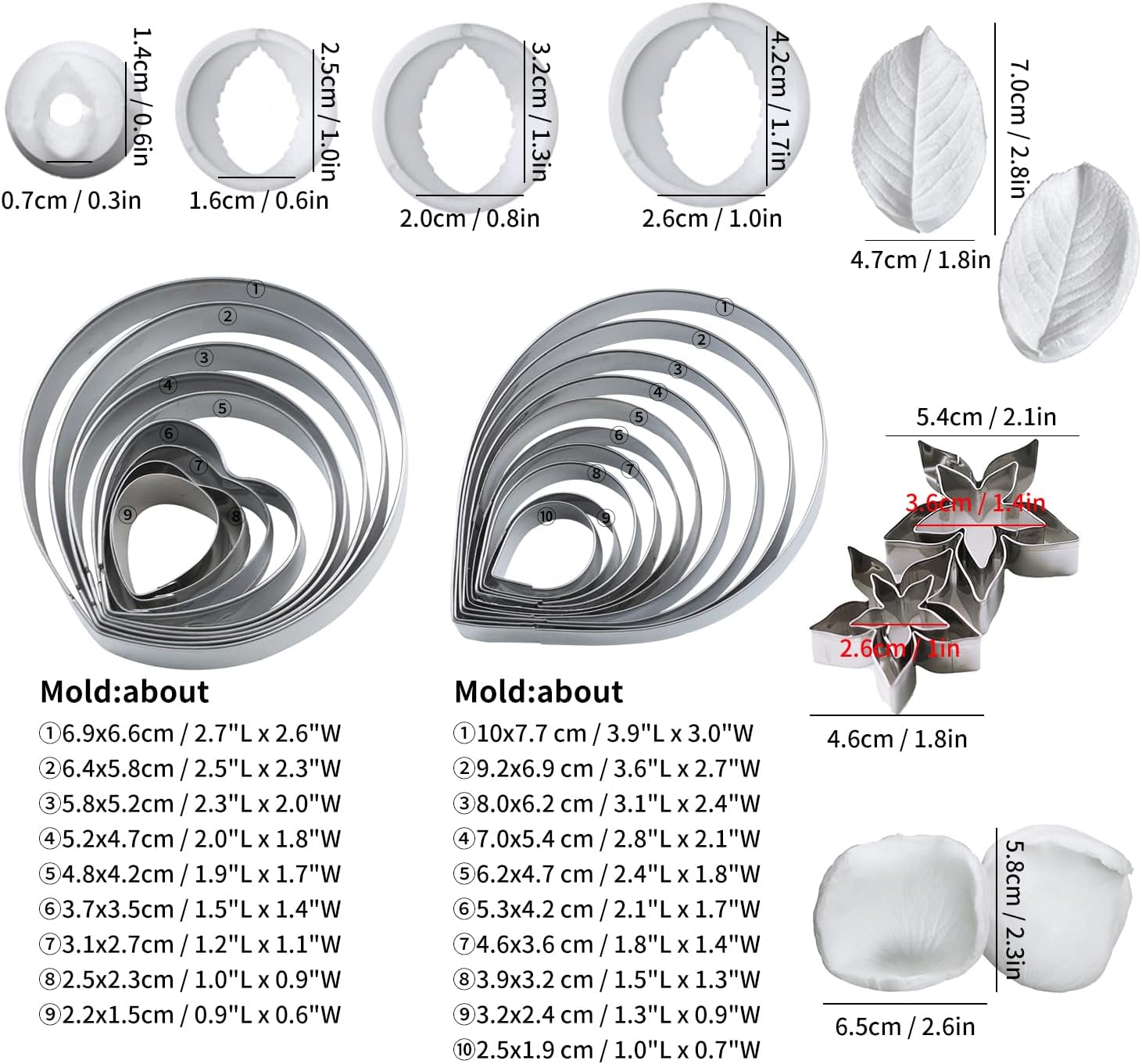 KALAIEN 31Pcs Austin Rose Cutter Set Rose Petals Silicone Fondant Mould Veining Petal Sugar Flower Making Tool