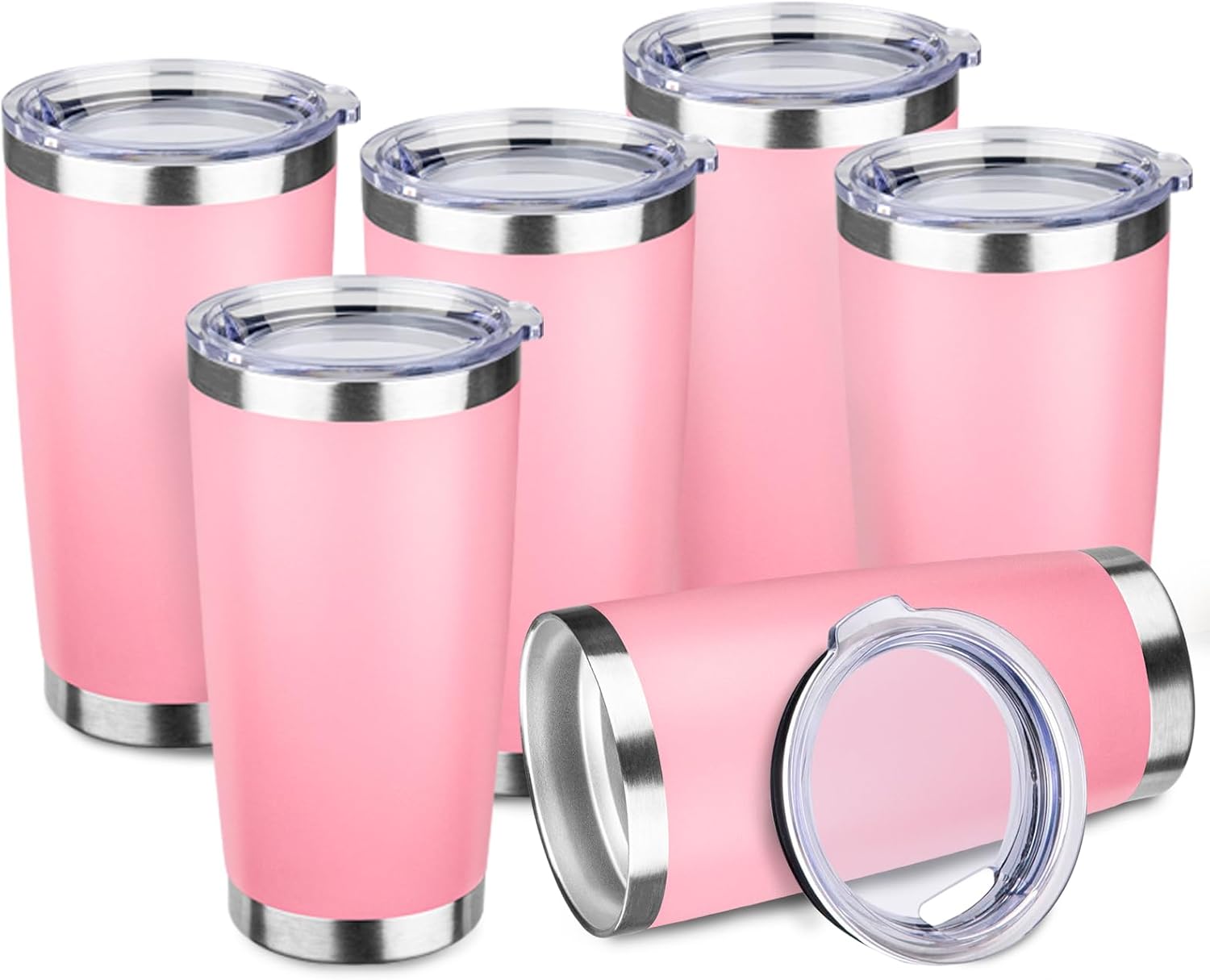StarSpeed 20oz Tumbler Bulk with Lid, Stainless Steel Insulated Tumblers Double Wall Vacuum Insulated Travel Mug, Powder Coated Coffee Cups for Hot and Cold Drinks(Lght Pink,6)