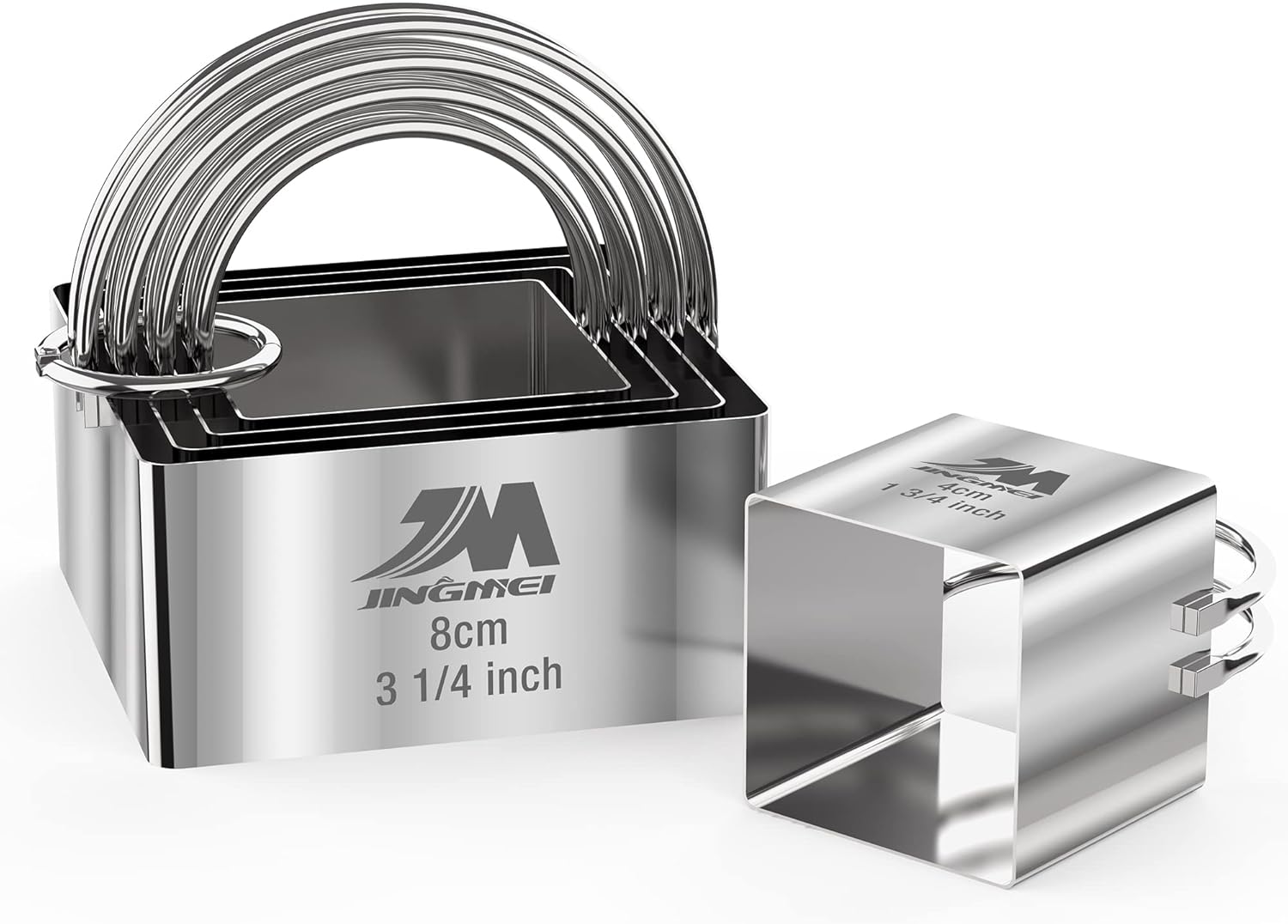 - ❀{5 pcs Square Cutter set }The Square Cookie cutter set of 5 different sizes , Biscuit cutter set/Square cake cutter sizes: Dia. 1 3/4inch(4cm), 2inch(5cm), 2 1/4inch(6cm), 2 3/4inch(7cm),3 1/4inch(8cm). Height: 1 3/4 inch (5 cm). Meet your different needs.