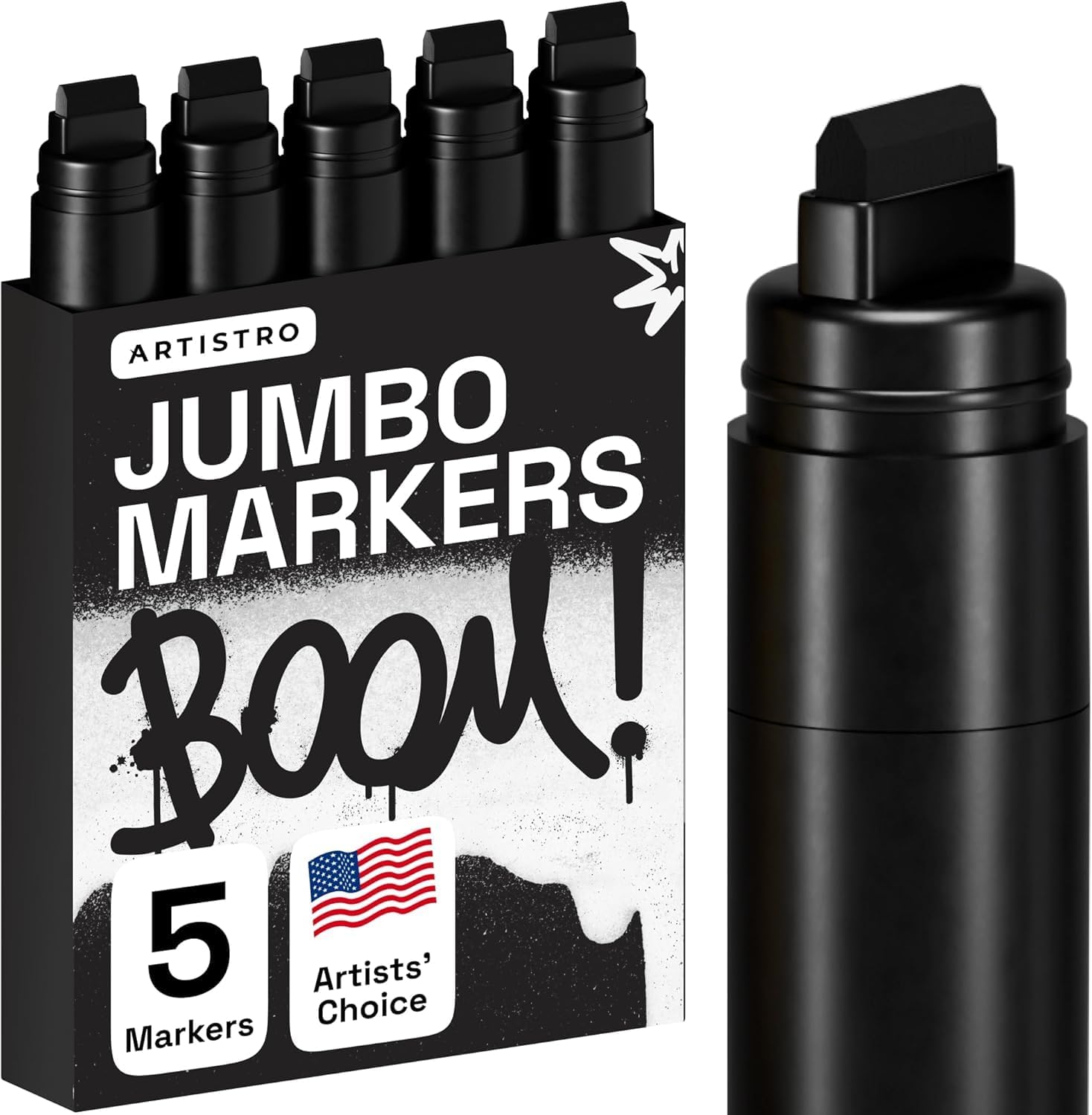 ARTISTRO 5 Black Acrylic Paint Pens, Acrylic Paint Markers Jumbo Tip, Fabric Markers for Textile, Canvas, Rock, Glass, Wood, Paper, DYI, Pens for Kids and Adults