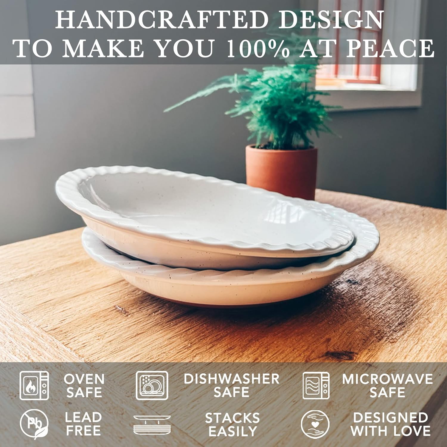 - CRYSTALLIZED GLAZE: Our glaze is lead free, cadmium free, and extra strong to prevent scratches from your metal utensils. Only we produce a crystallized glossy glaze that is strong enough to resist scratches under 1000 grams of pressure. Our smooth glaze allows for easy cleanup, and as always our products are microwave, oven, freezer, and dishwasher safe.