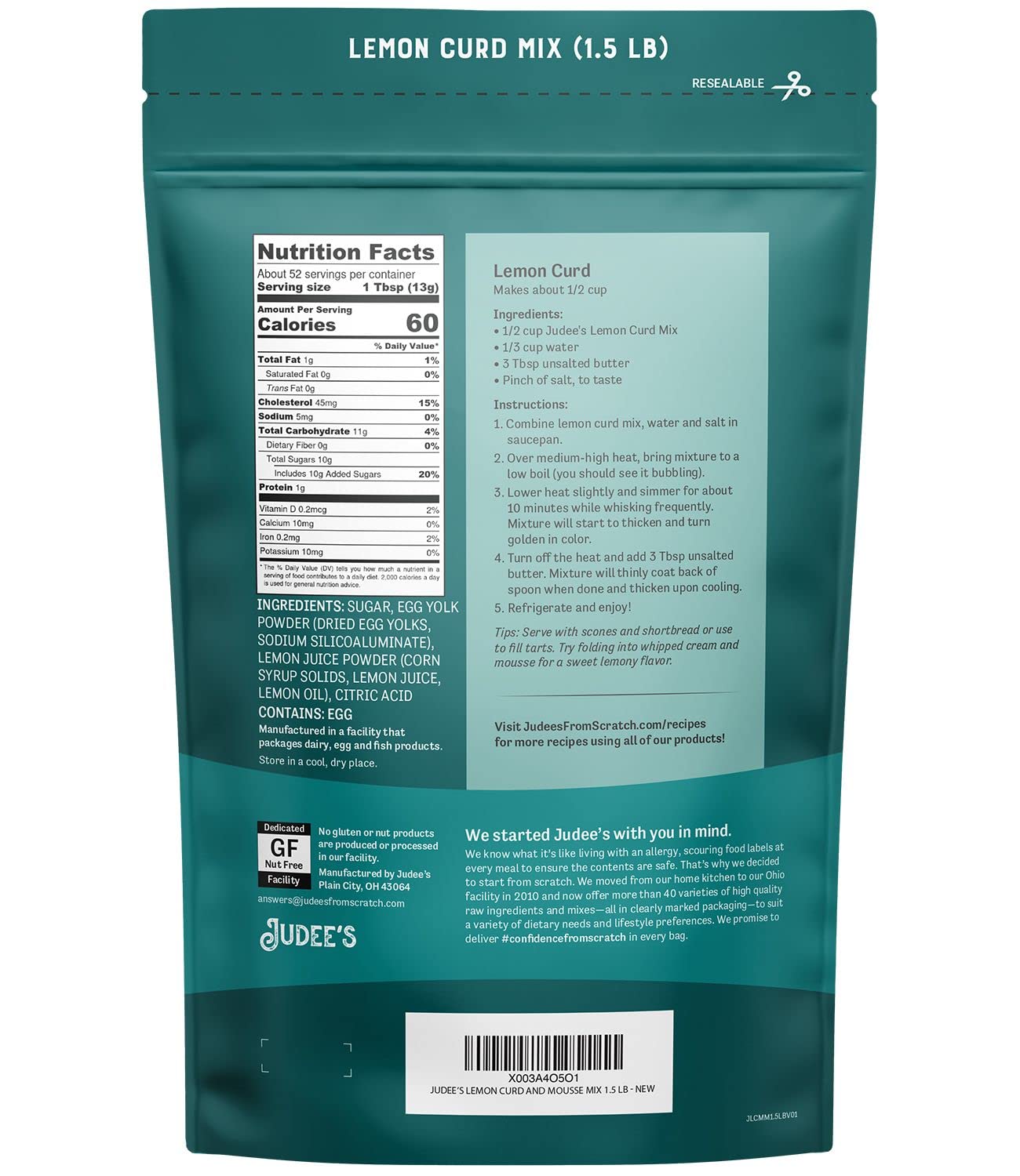 Judee's Lemon Curd and Mousse Mix, 1.5 lb - Gluten-Free and Nut-Free - Ideal Addition to Desserts and Baked Goods - With Easy-to-Follow Instructions – Made in USA