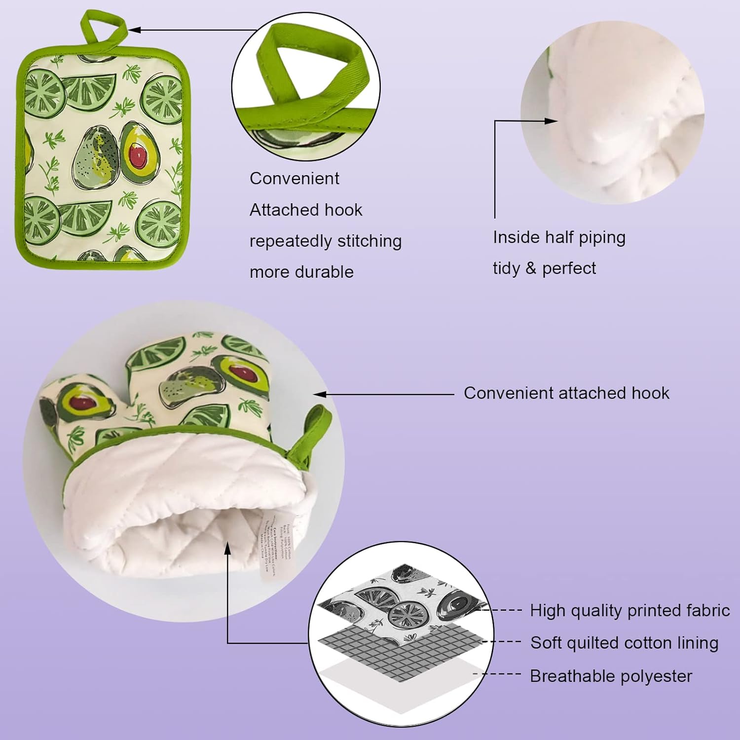 - 【Decorative Designs and Functional】- These kitchen Set feature a variety of avocado prints to complement your kitchen decor. These beautifully Designed and Packaged Value Kitchen sets perfect for birthday, holidays, housewarming and hostess gifts. We also offer a multiple combo and value packs in the same design which are ideal for gifting.