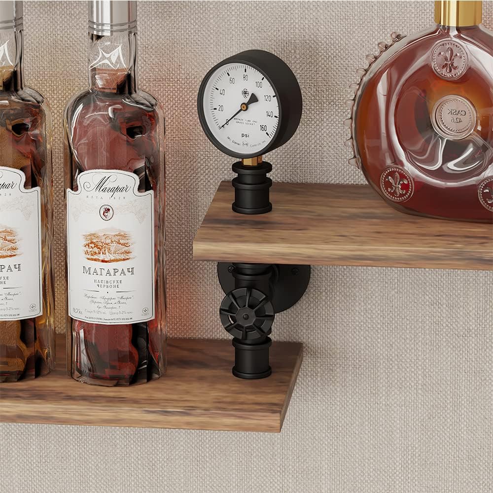 - Heavy Duty】This Vintage Wall Mounted industrial pipe shelving is constructed by top precise craftsmanship, it was designed with grab wall design. Baked powder coating surface treatment helps create a uniform finish, and makes the wine storage racks resistant to rusting.