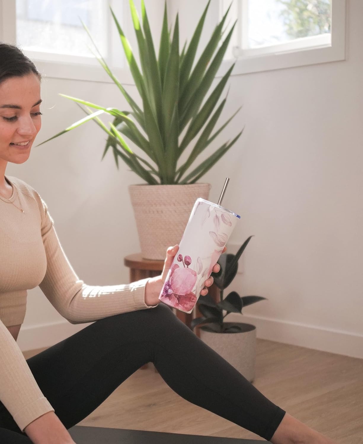 THILY Stainless Steel Vacuum Insulated Tumbler 26 oz Triple-Insulated Travel Mug with Splash-Proof Lid, for Iced Coffee and Hot Beverage, Pink Lilies + Lotus Flower