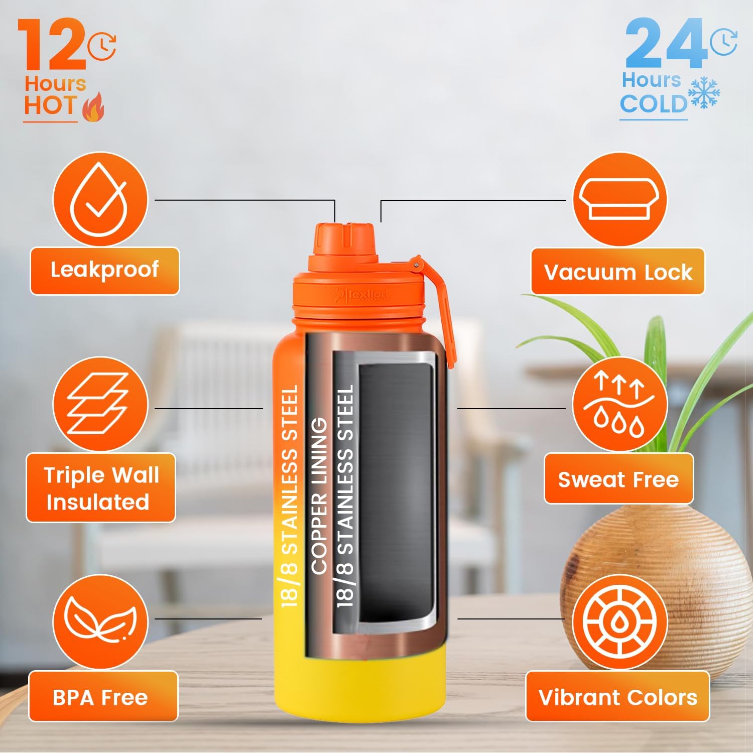 - ✅ SILICON BOOT/SLEEVE- Lexlion 32 oz stainless steel water bottle comes with an advanced shock-absorbing silicone material that helps to protect against dents, dings, scratches, and all the imperfections of your 32 oz insulated water bottle. You are protected against an inevitable drop in your water infuser bottle. This will extend the life of your flask. The infuser water bottle is BPA-free and made of soft and highest-quality material.