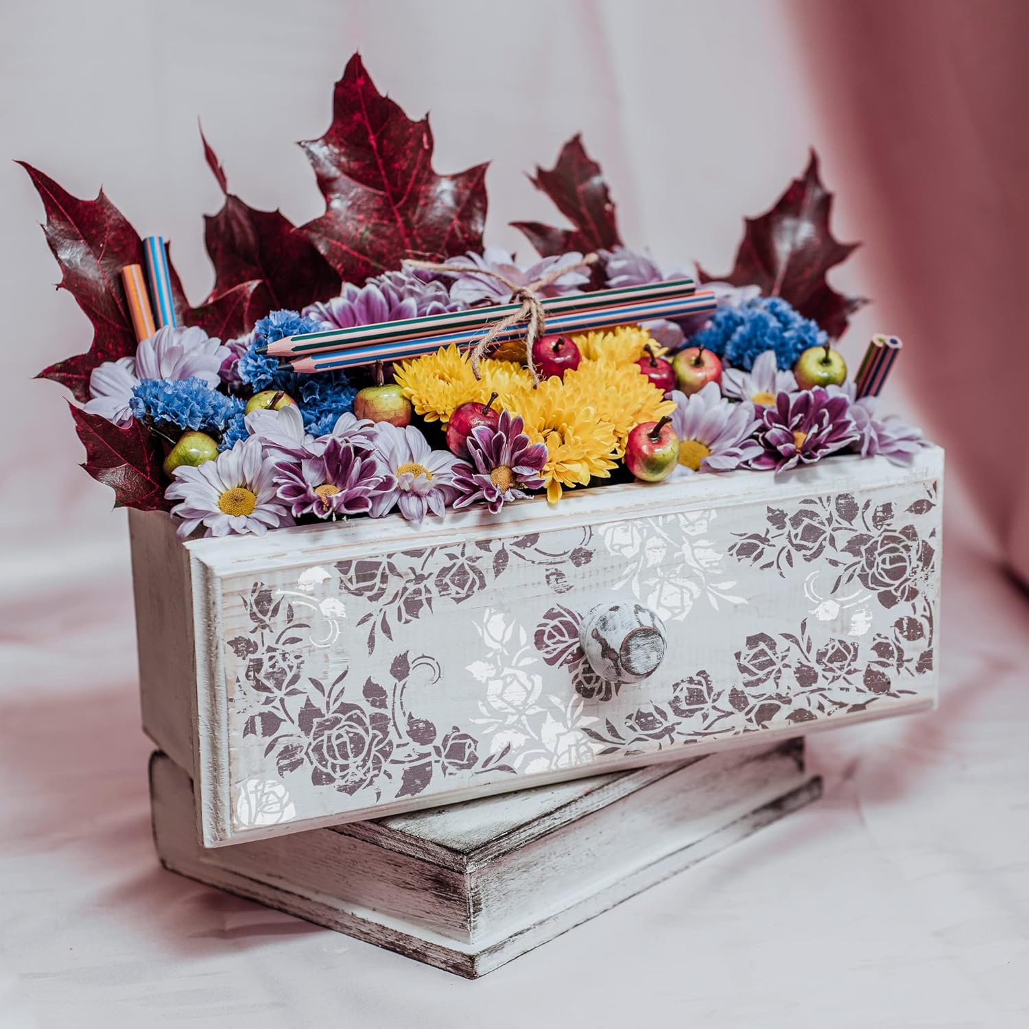 NAKLEO DIY Reusable Plastic Stencil - 30x42cm / 11.7” x 16.5” - Rose Flower Ornament - Art Craft Wall Painting Pattern Template Scrapbooking Decoupage - Fabric Furniture Wood