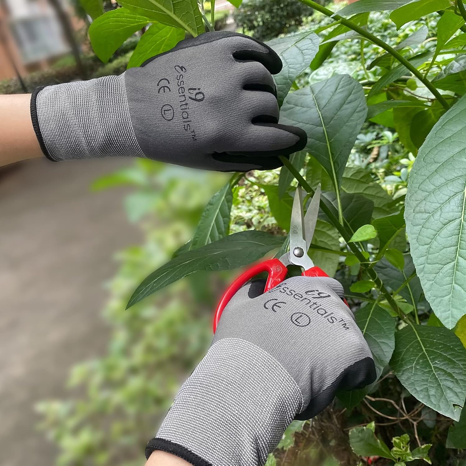I9 Essentials Safety Work Gloves – 12 Pairs MicroFoam Nitrile Coated, Seamless Nylon Knit Grip Gloves for Construction, Home Improvement, Gardening, Mechanics, Automotive – Large, Breathable