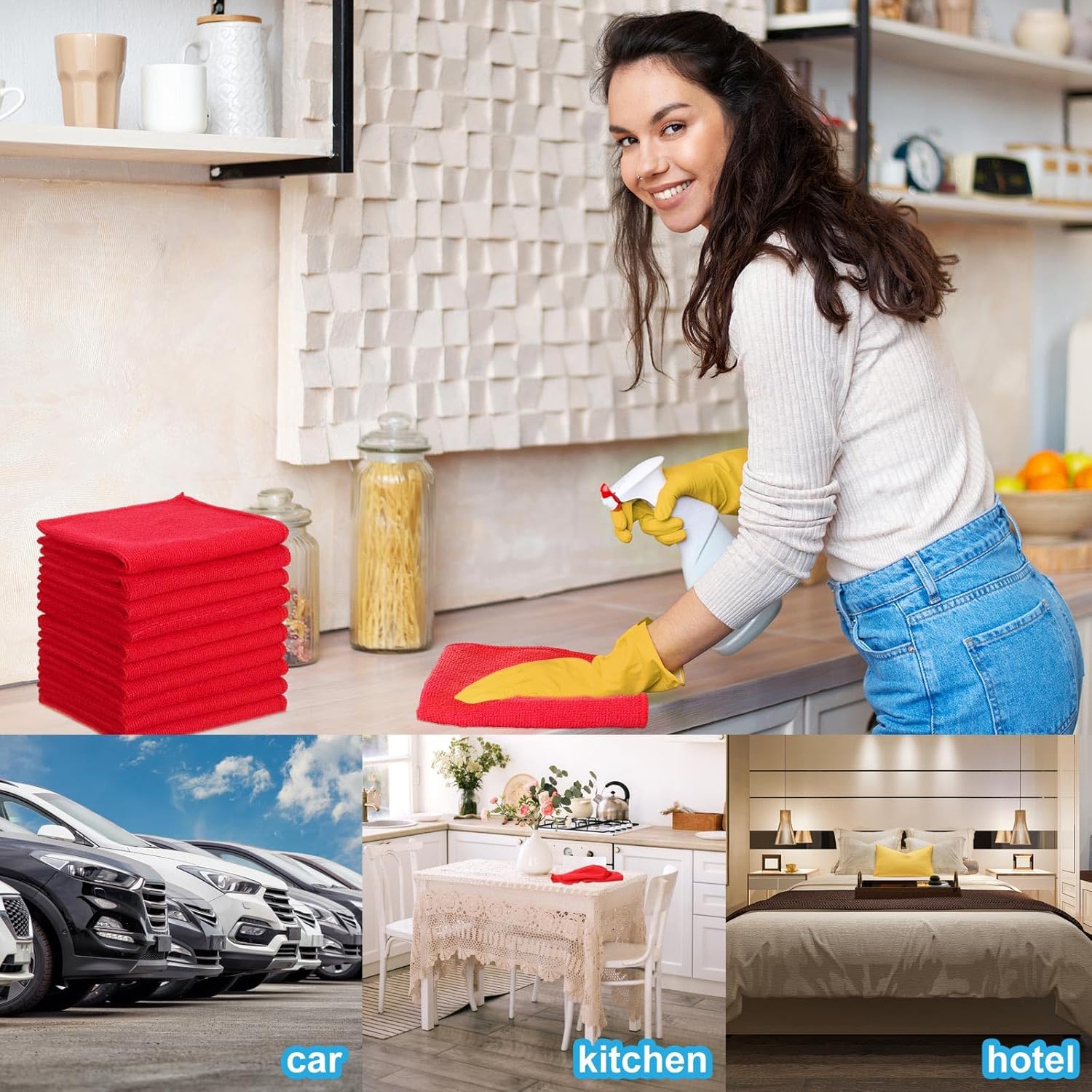 Tenare 100 Pack 12'' x 12'' Microfiber Cleaning Cloths Reusable Cleaning Rags Bulk Microfiber Towels Softer Highly Absorbent Washcloths for House Kitchen Car Window(Red)