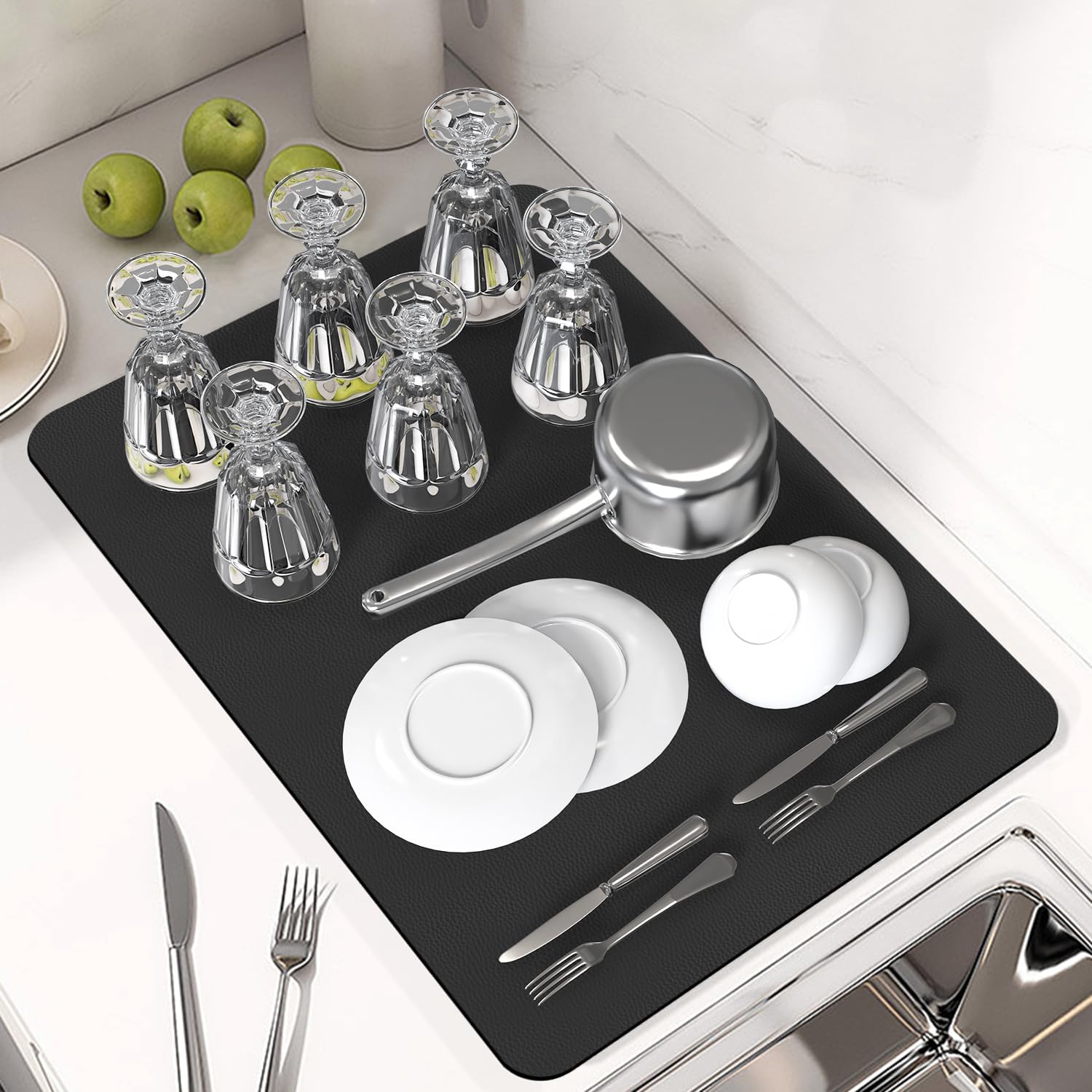 PoYang 24"x16" Coffee Mat Large, Coffee Bar Accessories for Countertop, Absorbent Dish Drying Mat, Anti-Slip and Hide Stain Pad for Espresso Machine, Espresso Maker and Kitchen Counter, Black