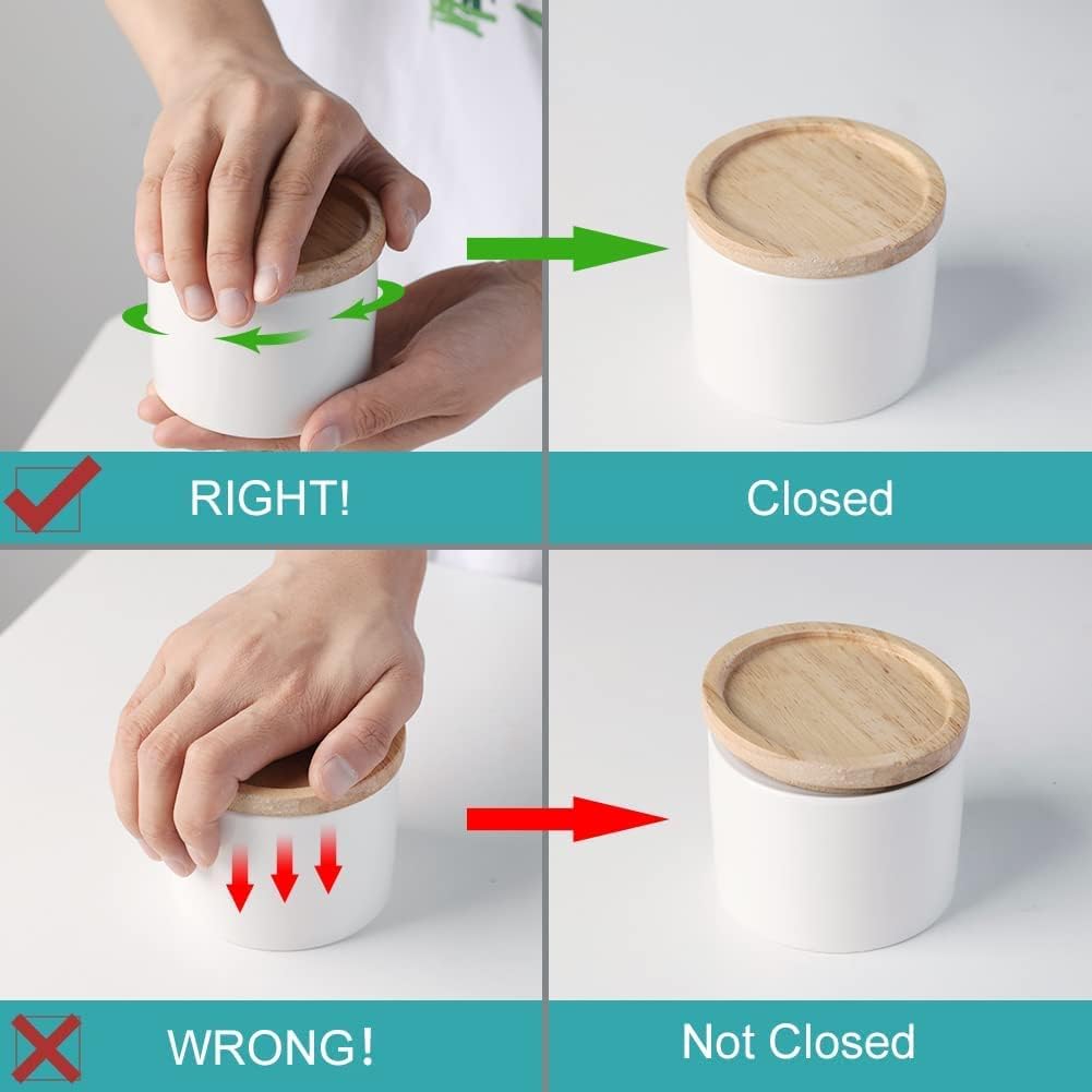 - Precautions for Use - The original wooden lid has a slight odor what doesn't affect the use. Airing several times will disappear. When sealing, rotate and press the lid at the same time. Lids are hand wash only. Canisters are microwave and dishwasher safe.