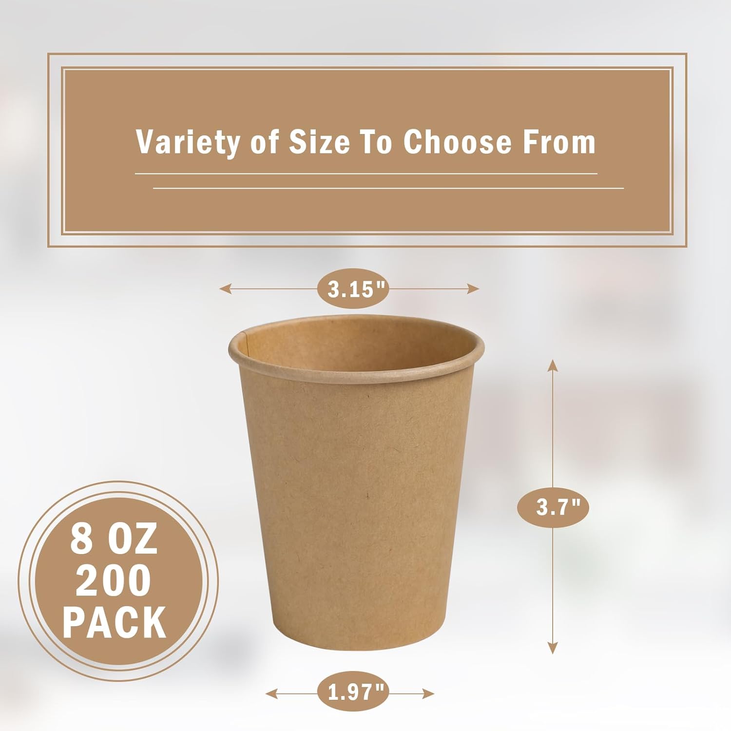 - 【Value Pack】 You will get 200 pack of 8 oz disposable kraft paper cups at a affordable price, enough quantity to meet all your requirements