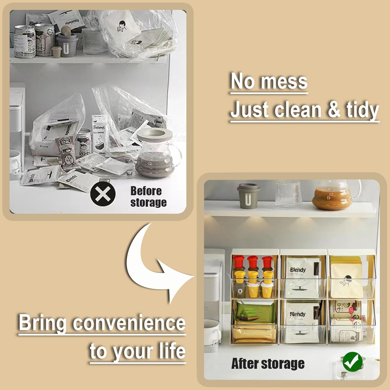 - Convenience to Clean: The drawers of tea bag storage organizer can be removed and washed with water directly, which is easy to clean. Each drawer has a buckle design, which is not easy to fall off accidentally after installation.