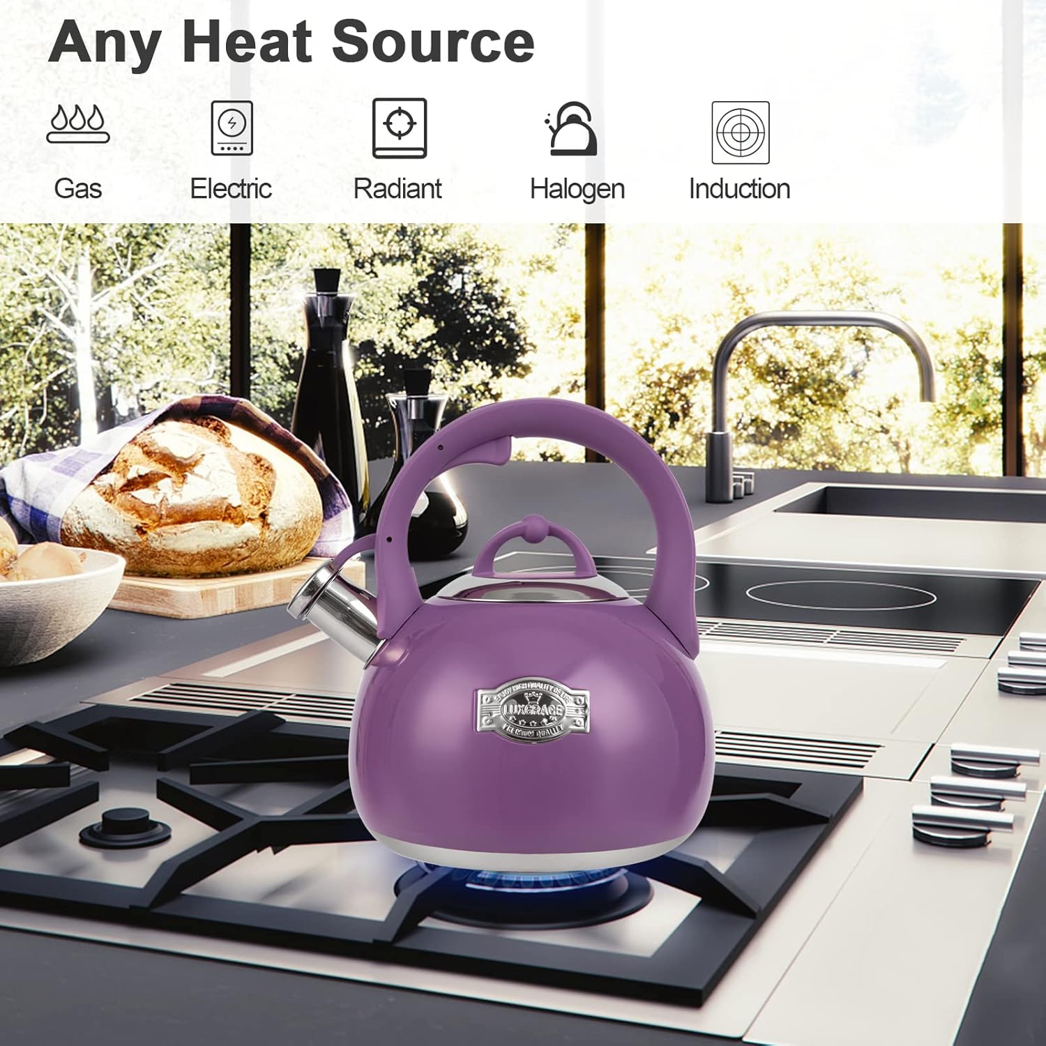 - Stainless Steel Design:Whole teakettle body are made of stainless steel, The thick body making it more durable and sturdy. 5-layer metal bottom with high thermal conductivity for more uniform heating and longer service life.