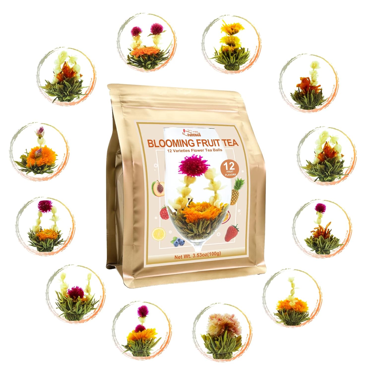 FullChea - Blooming Flowering Tea, 12 Unique Varieties - Flowering Tea in 12 Delicious Fruit Flavors - Gift For Tealovers, Christmas, Anniversary, Valentine, Birthday