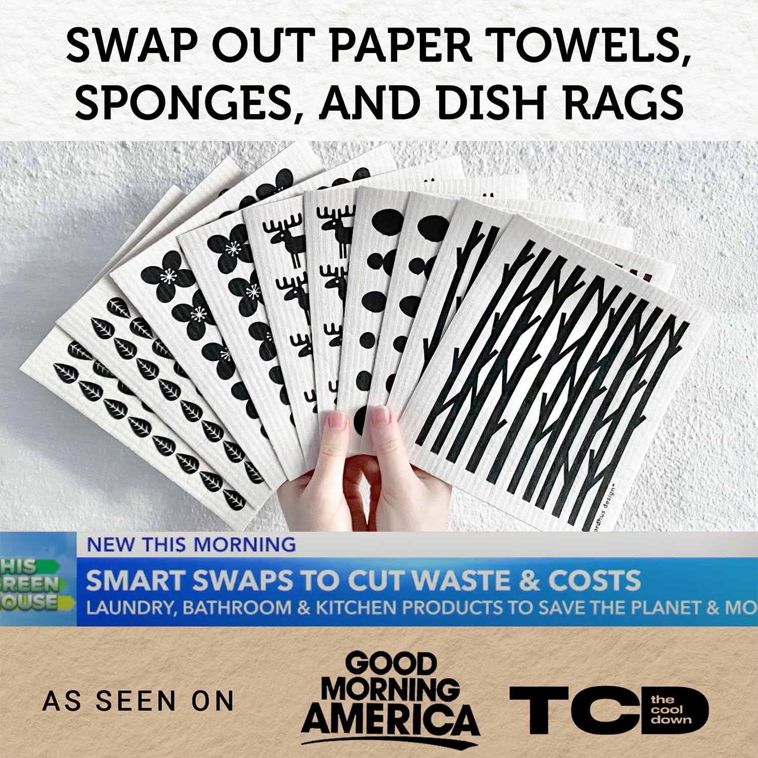 - Eco-Chic Packaging - Our black and white Swedish dishcloths come in a charming 100% compostable package. Perfect for housewarming events, birthdays or holidays, this Swedish dishcloth set thoughtfully combines elegance and practicality.
