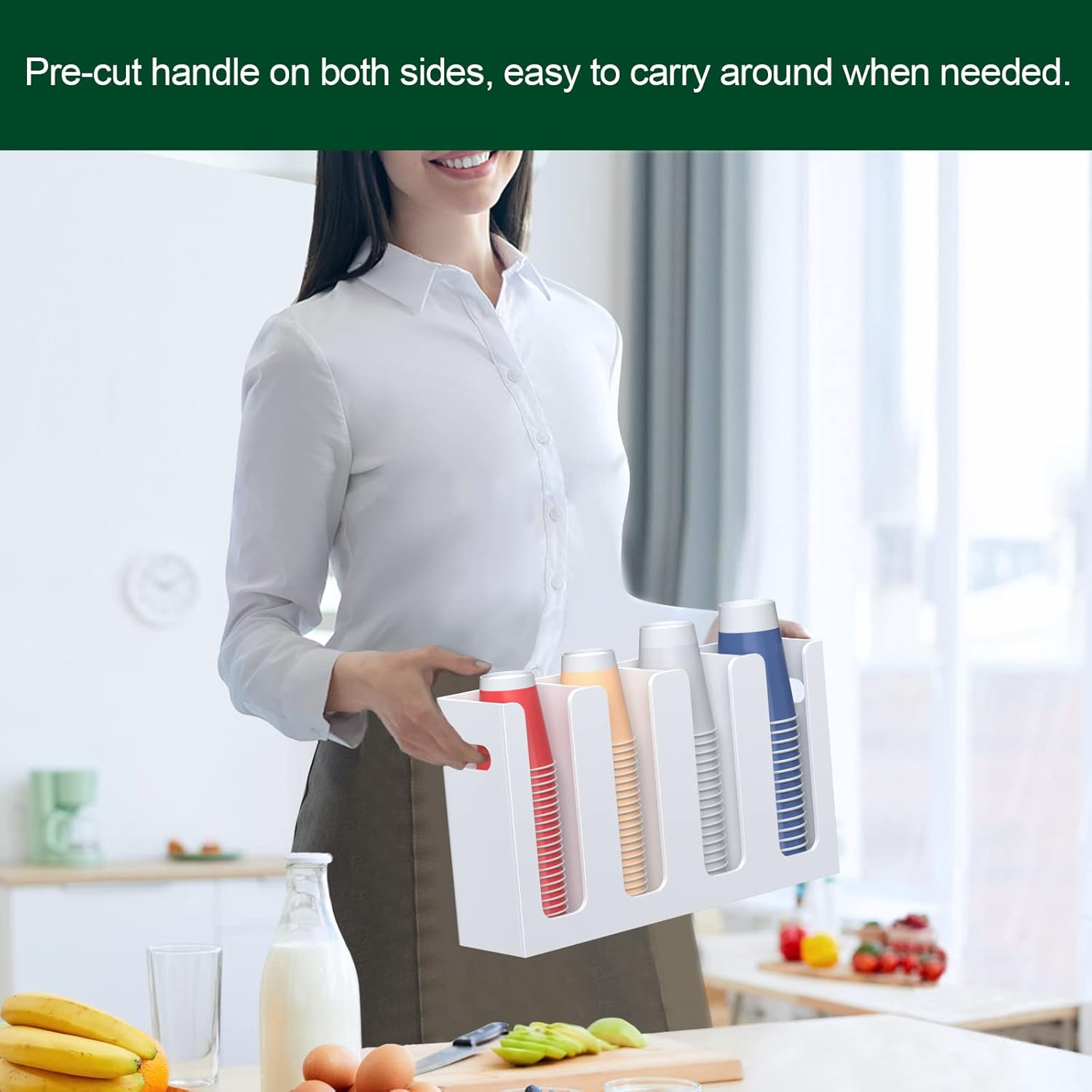 Disposable Coffee Cup Dispenser with Handles, Countertop or Wall Mount Hot/Cold Drink Cup and Lid Holder - Bathroom/Kitchen/Office Acrylic Cup Lid Storage Organizer (4 Compartments, White)