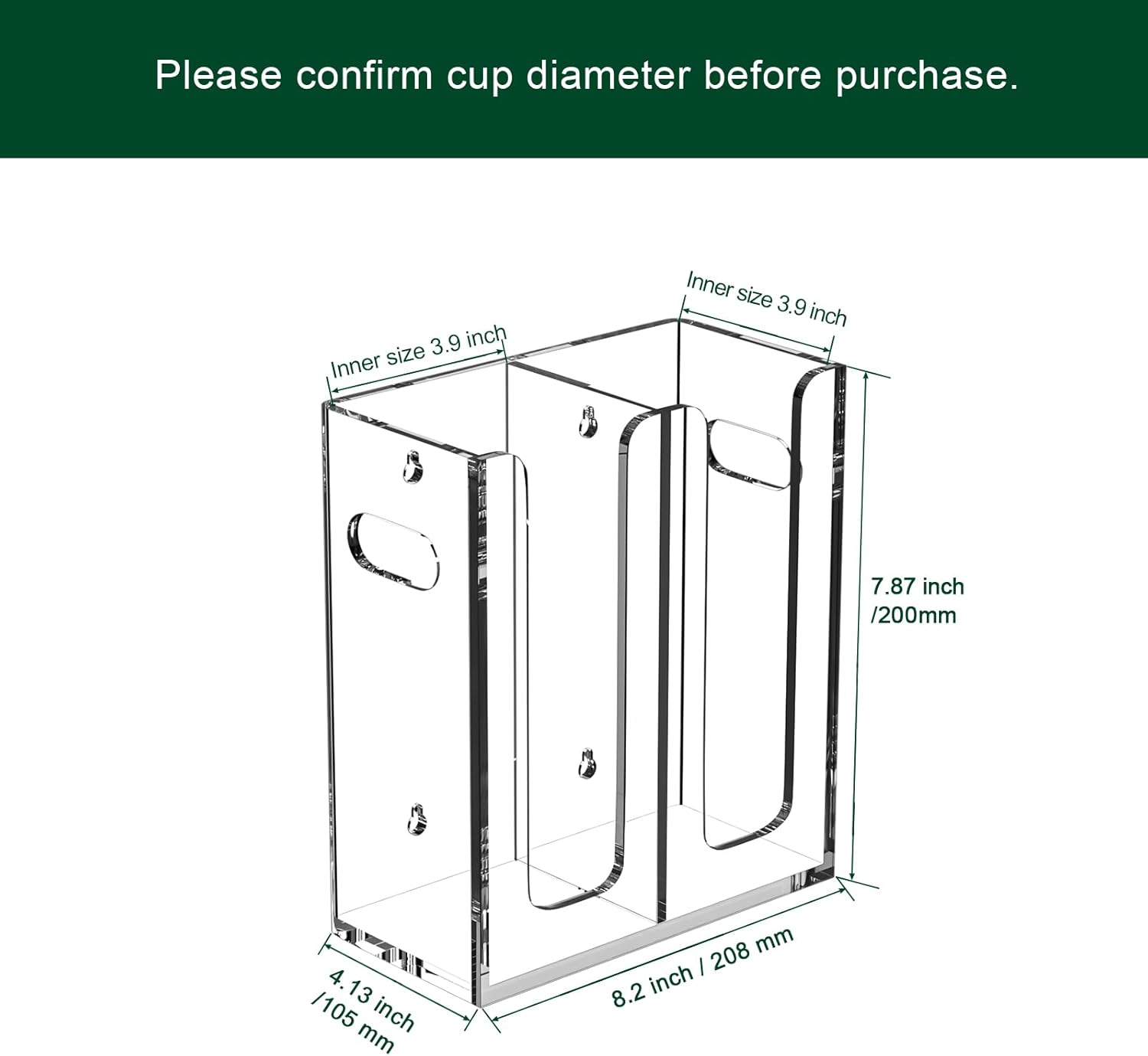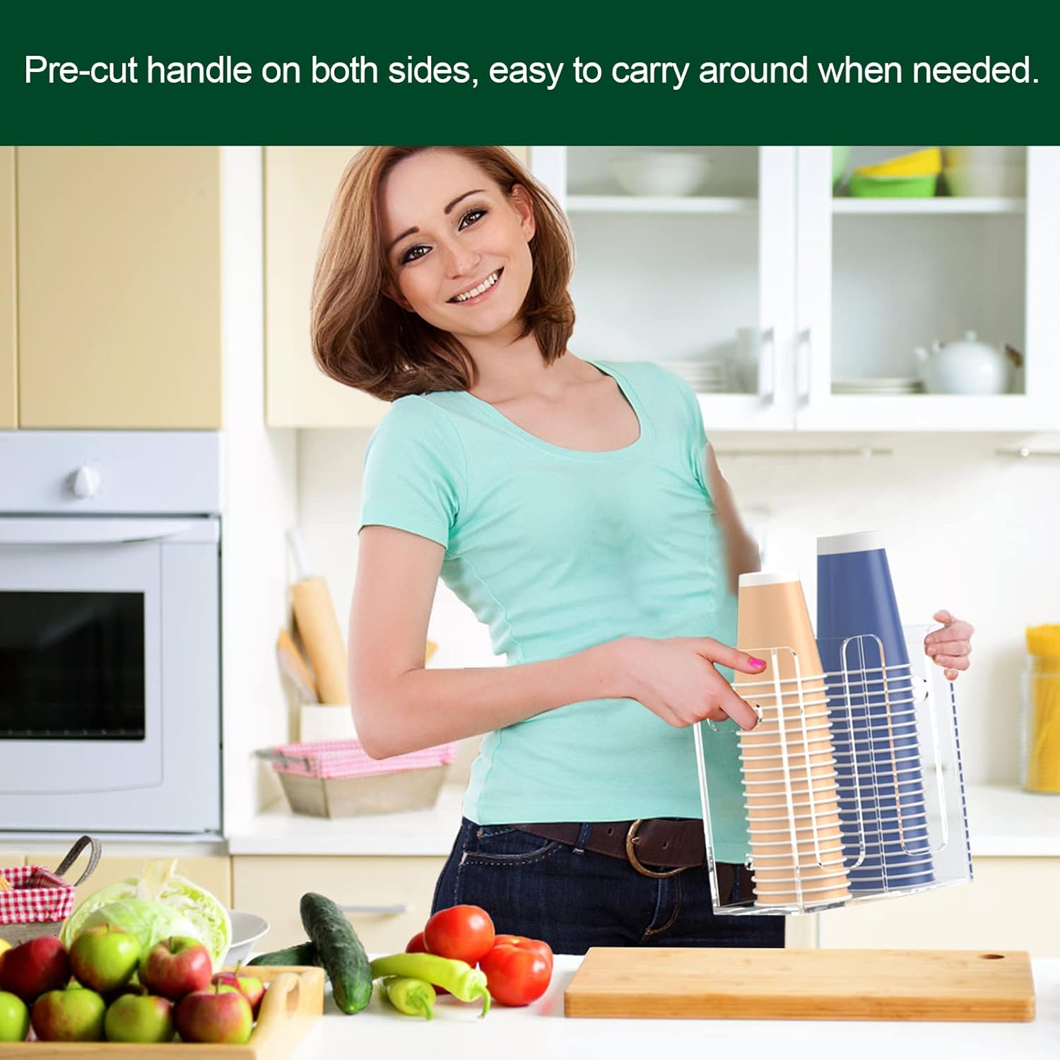 - Material - made of 4mm thickness acrylic, the disposable cup organizer is an ideal container to make your home kitchen bathroom or break room office coffee station area less cluttered, it keeps plastic or paper coffee cups or tops organized. No more cups and lids floating around when wind picks up.