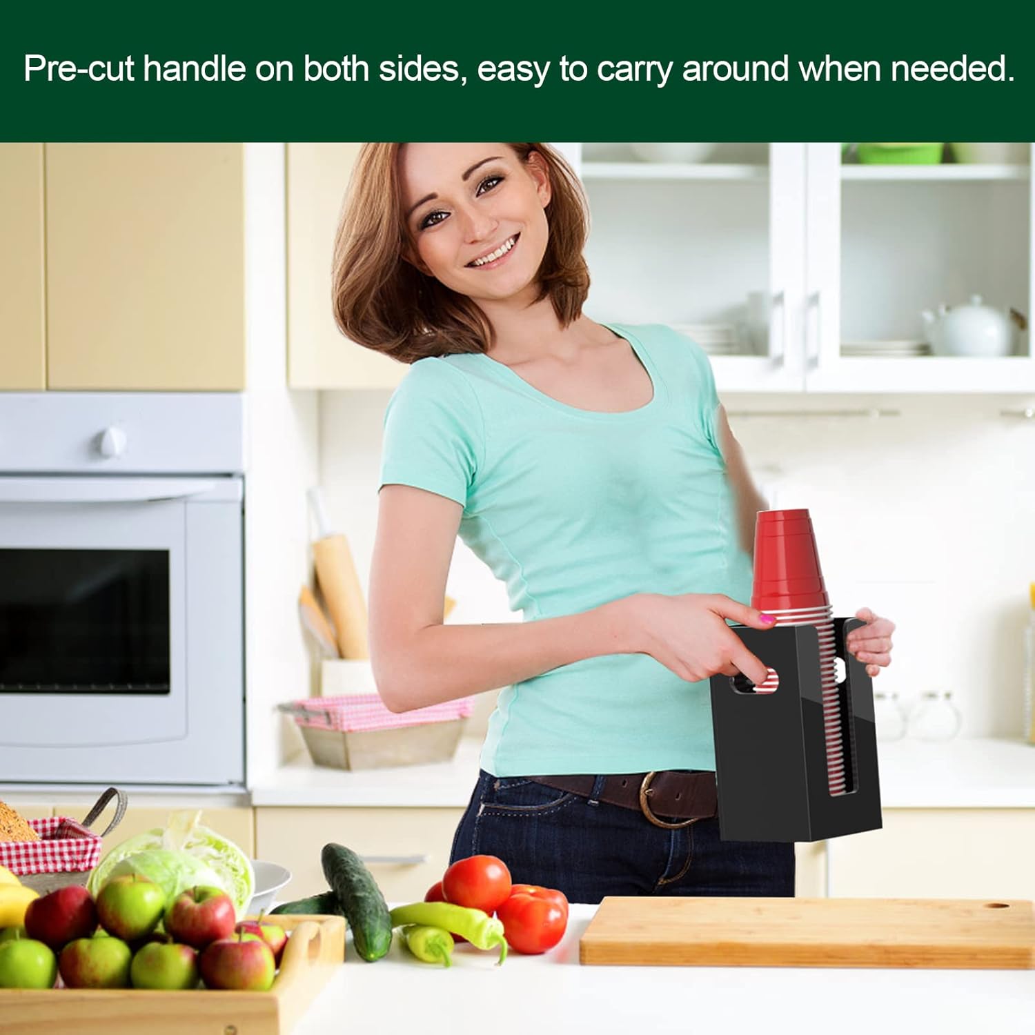 - Material - made of 4mm thickness acrylic, the disposable cup organizer is an ideal container to make your home kitchen bathroom or break room office coffee station area less cluttered, it keeps plastic or paper coffee cups or tops organized. No more cups and lids floating around when wind picks up.