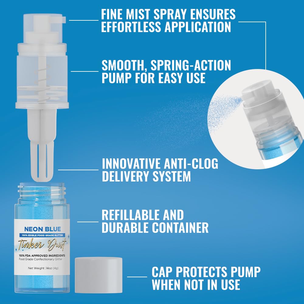 Bakell - Neon Blue Tinker Dust (4g, 1x Mini Spray Pump) Edible Glitter for Food, Desserts, and Beverages!