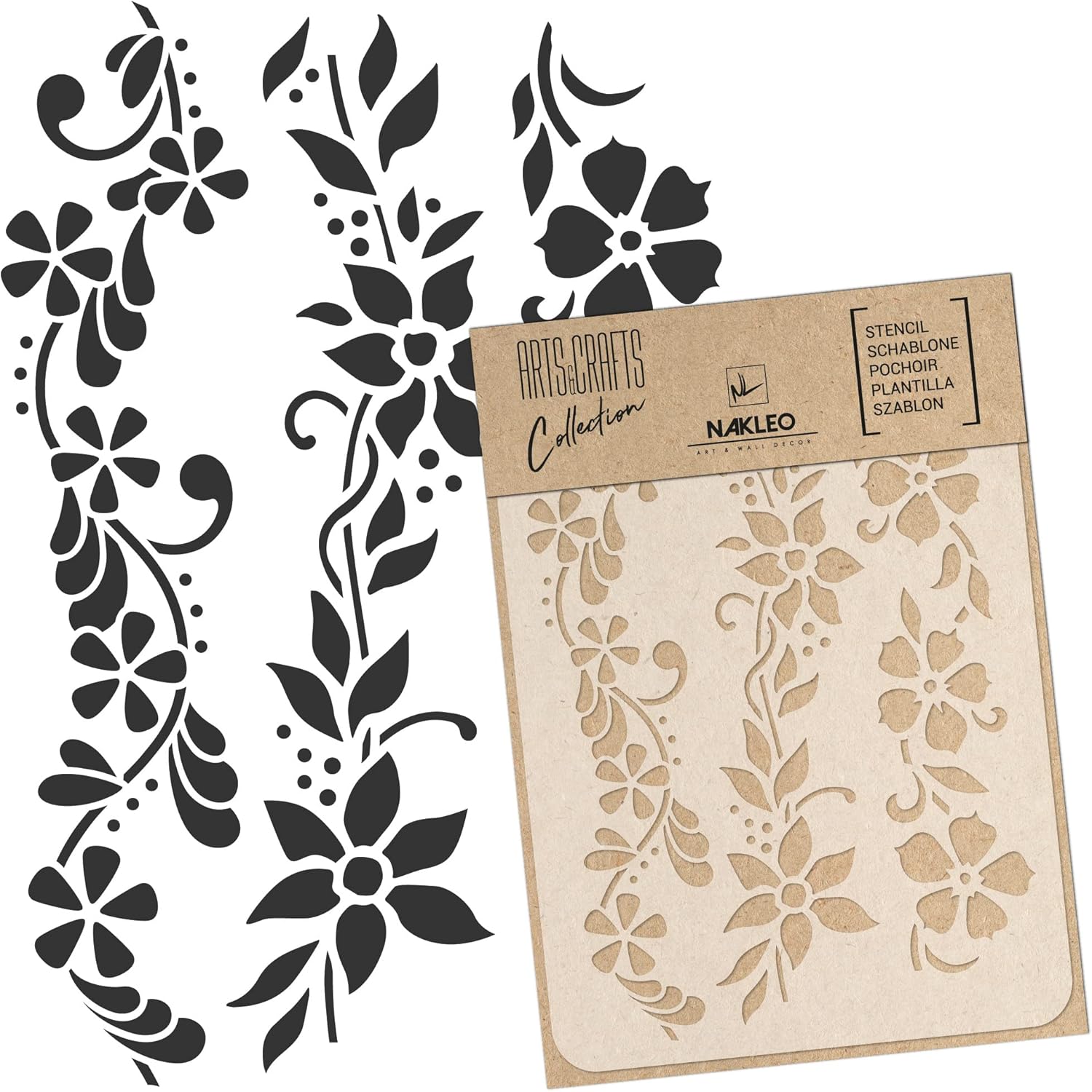 NAKLEO Painting Stencil for Crafts A5 5.9” x 8.3”, Flowers Mini Border Pattern, Reusable Plastic DIY & Scrapbooking Drawing Template, Decoupage Art Home Decor, Wall Wood Fabric Furniture