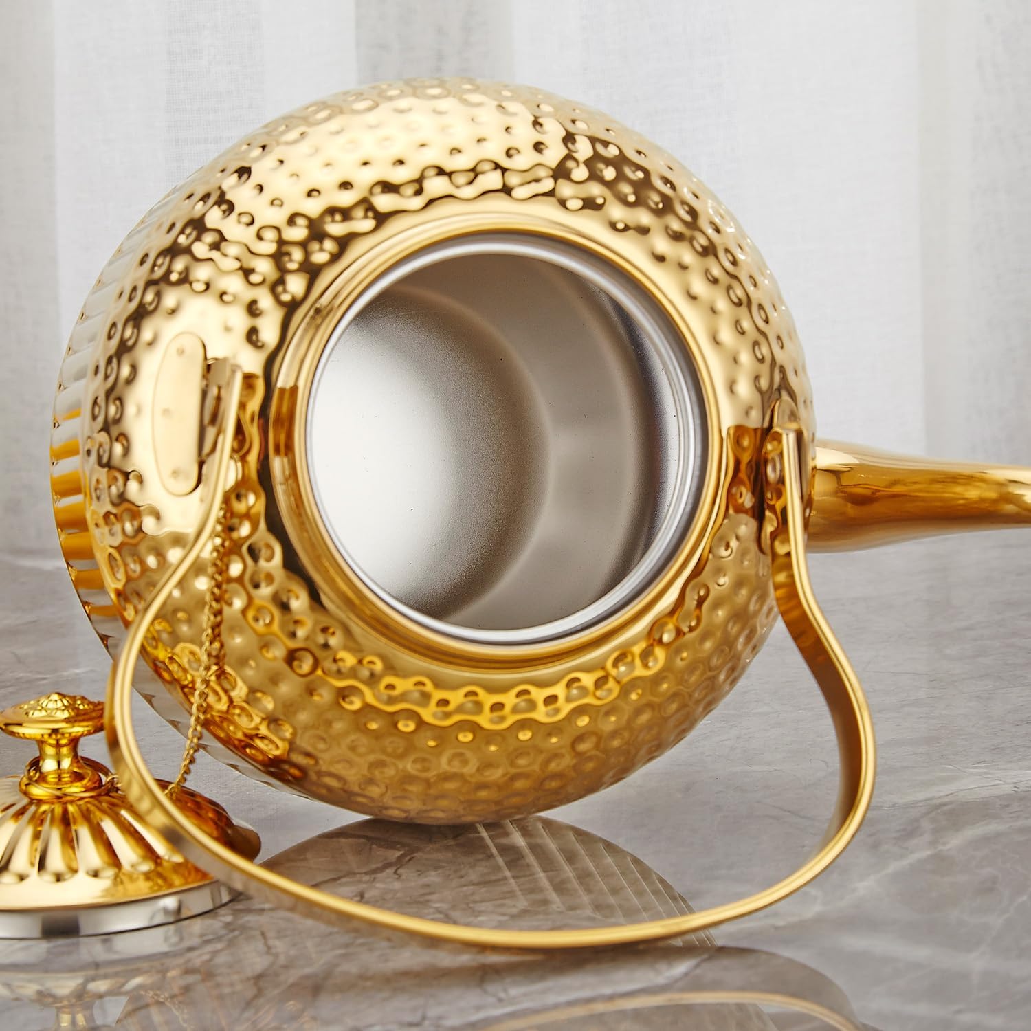 SANQIAHOME Antique 1.5L (50Oz) Stainless Steel Teapot with Infuser Gold