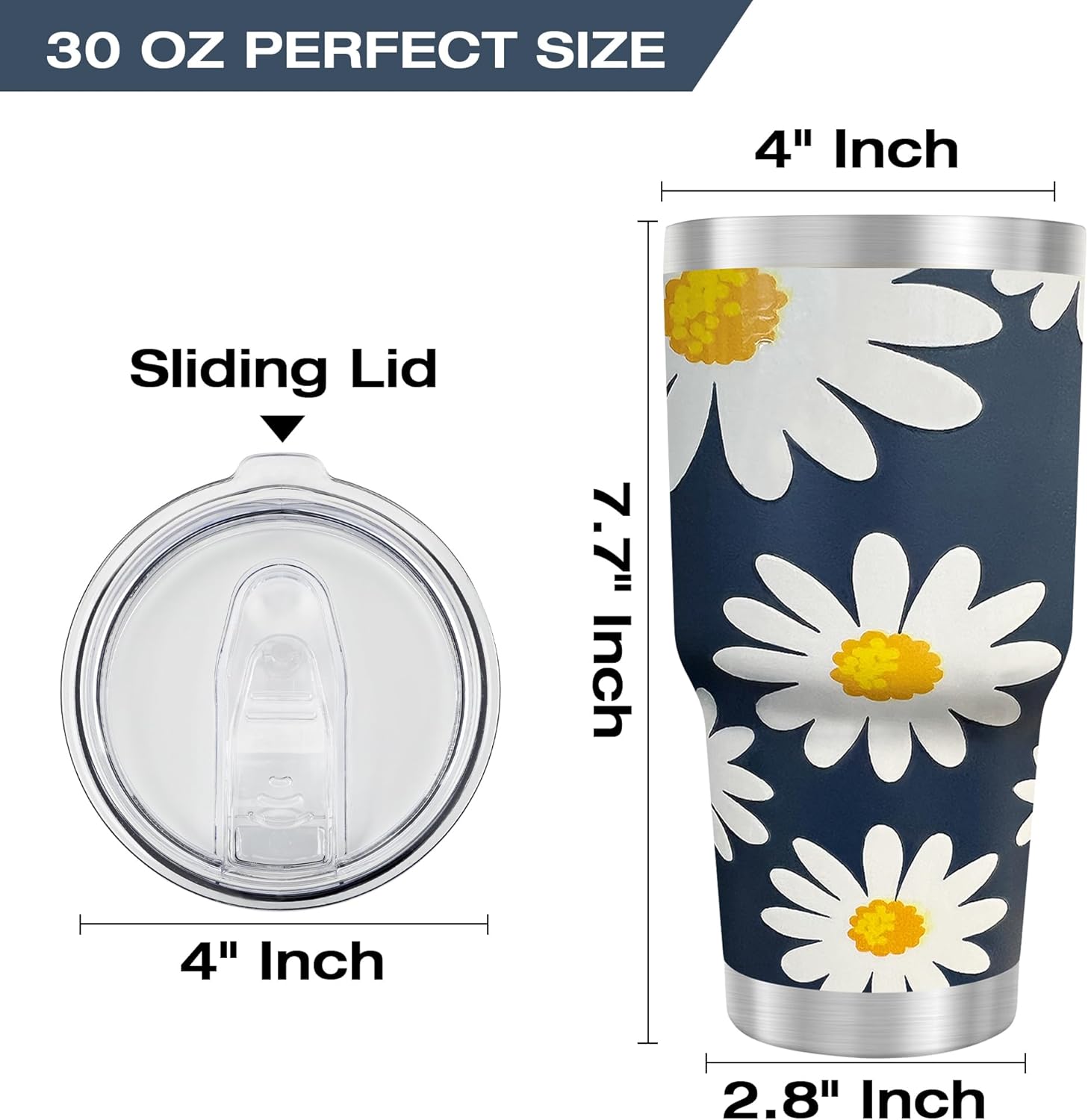 WETOWETO 30oz Tumbler, Stainless Steel Vacuum Insulated Water Coffee Tumbler Cup, Double Wall Powder Coated Spill-Proof Travel Mug Thermal Cup for Home Outdoor (Daisy Flower, 1 Pack)