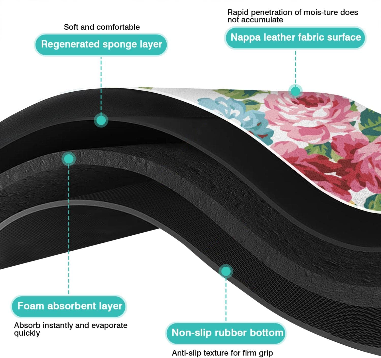 Rubber Dish Drying Mat for Kitchen Counter Large Pink Red Roses Floral Washable Quick Home Coffee Pad Fit Under Sink,Bar,Utensils 16x18in