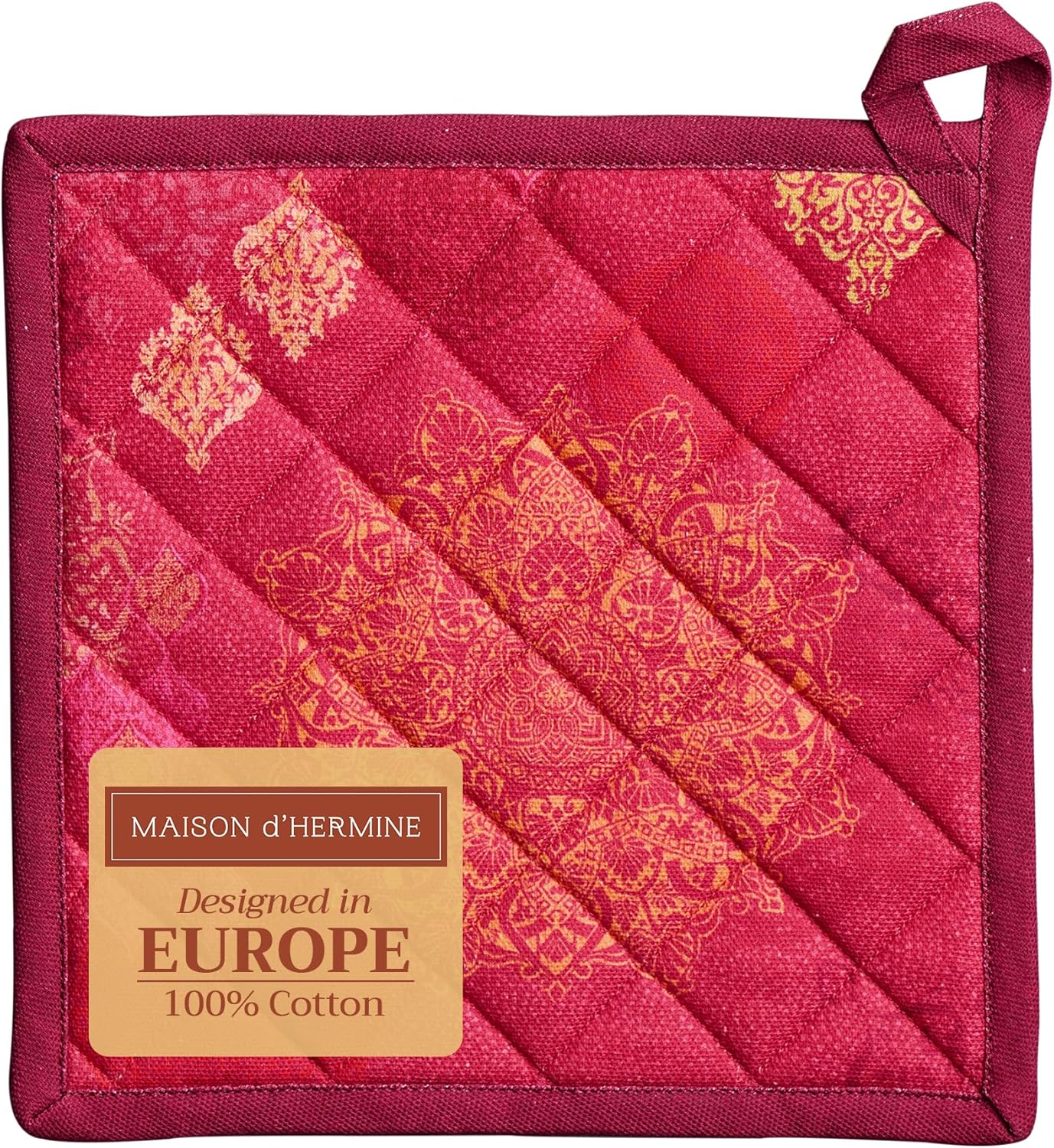 Maison d' Hermine Pot Holders 100% Cotton Heat Resistant Potholders 8" x 8" Hot Pads with Loop BBQ, Cooking, Baking, Grilling, Kitchen, Handling Hot Pans (Pack of 1, Versailles)